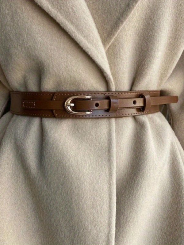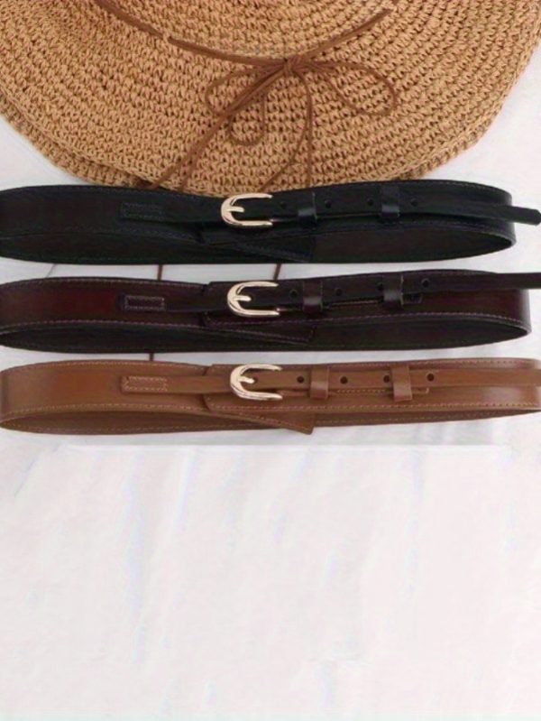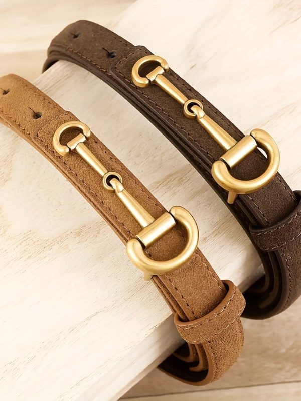 Women'S Elegant Double-Sided Thin Belt - Sophisticated Waist Cinch with Decorative Buckle, for Dresses, Skirts, Pants - Formal & Everyday Outfits - Durable Synthetic Belt for Parties, Office, Casual Events - Women'S Fashion Accessory, Party Accessory, Sophisticated Style, Highend Feel, Office Wear, Stylish Accessory, Premium Material, Versatile Accessory, Professional Women
