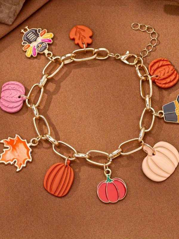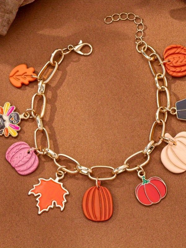 Thanksgiving holiday blessing maple leaf bracelet, cute squirrel honey pot pumpkin pendant bracelet, hand-made greeting card with blessing words, is a gift to celebrate the holiday, for favorite family and friends sisters, Sentimental Keepsake, Festive Jewelry, Whimsical Design, Pumpkin Charm, Detailed Pendant, Durable Charm, Charm Bracelet, Greeting Card Jewelry, Holiday Shoppers, Sisters Jewelry, for Teenager