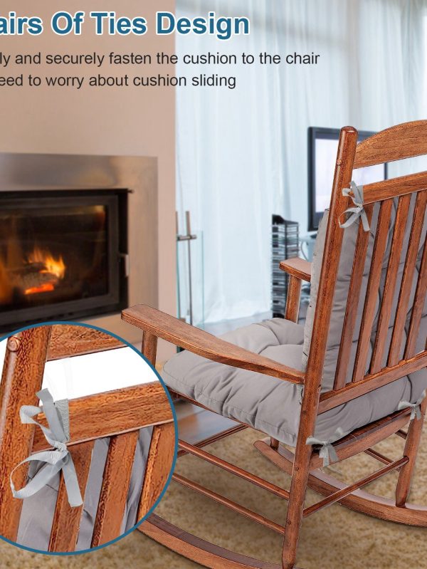 2Pcs Waterproof Rocking Chair Cushion Upper And Lower Back And Seat Sets With Non-Slip Ties Oxford Cloth Surface Polyester Filling Comfortable For Indoor Home Office Car
