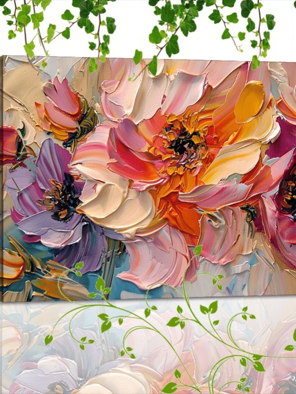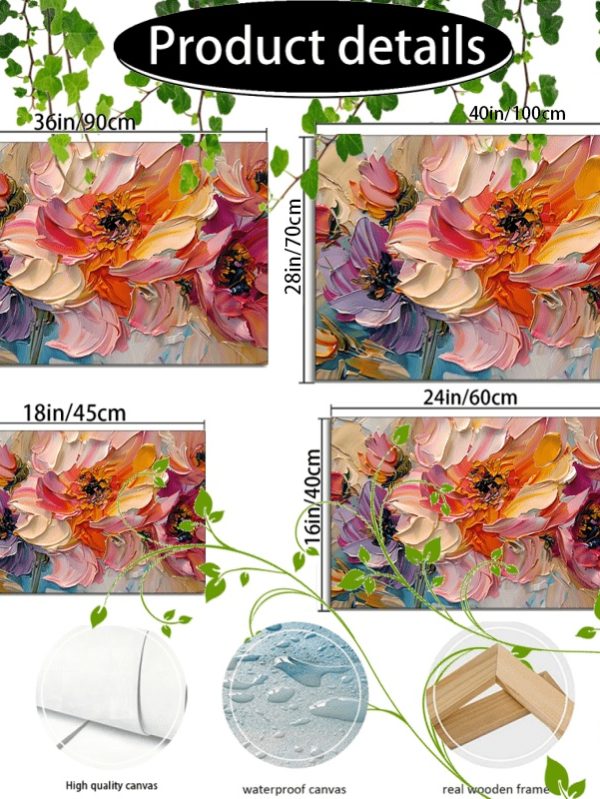 1pc Vibrant Floral Canvas Art With Wooden Frame - Textured Pastel Flowers, Abstract Blossom Arrangement For Home & Office Decor, Ideal For Living Room, Corridor, Anniversary