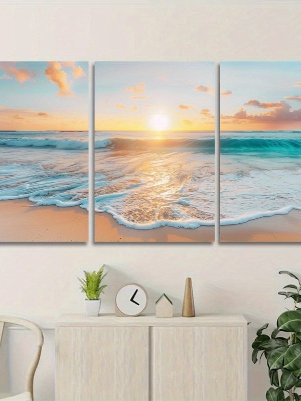 3pcs Wood Frame Canvas Print Decorative Painting, Sea Life Octopus Turtle Seahorse Watercolor Art Painting--Selling On Temu Is Prohibited