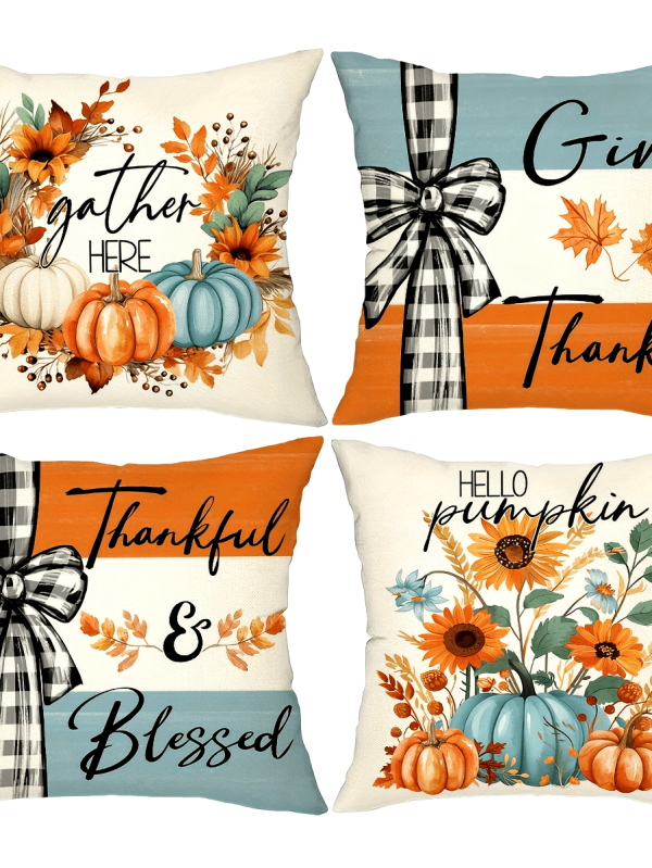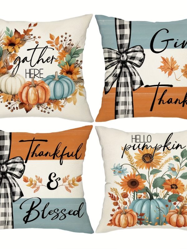 Set Of 4, Farmhouse Style Pumpkin Maple Leaf Throw Pillow Covers, Buffalo Plaid Thankful Blessed Sweet Home Patio Cushion Covers, Autumn Harvest Thanksgiving Day Home Patio Decor Pillowcases, for Indoor Outdoor Living Room Patio Yard Couch Sofa, No Pillow Inserts