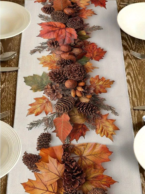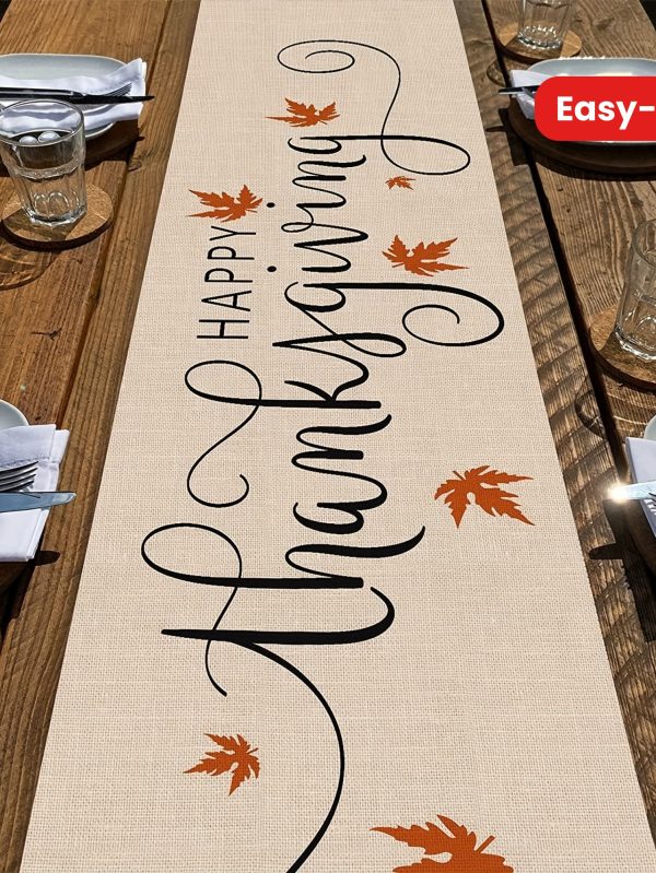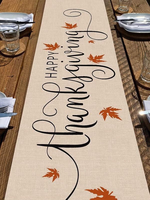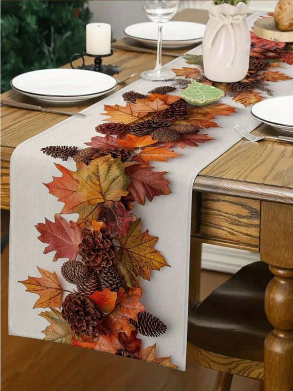 1pc Thanksgiving Linen-Textured Polyester Table Runner with Autumn Maple Leaf Design - Rustic Farmhouse Seasonal Decor for Thanksgiving, Halloween, Mother’s Day, Father’s Day, Independence Day - Durable & Easy-Care Holiday Tablecloth, Thanksgiving Decorations