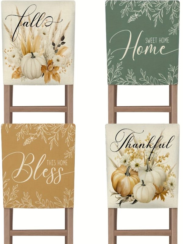 4pcs Fall Chair Covers - Watercolor Wheat Ears & Pumpkin Design, Machine Washable Linen, Contemporary Style for Home & Bedroom Decor, Autumn-Themed Holiday Chair Covers with "Thanksgiving" & "Fall" Text, Chair Covers for Living Room, Chair Cover For Dining Chair, Stretch Chair Cover, Office Chair Cover
