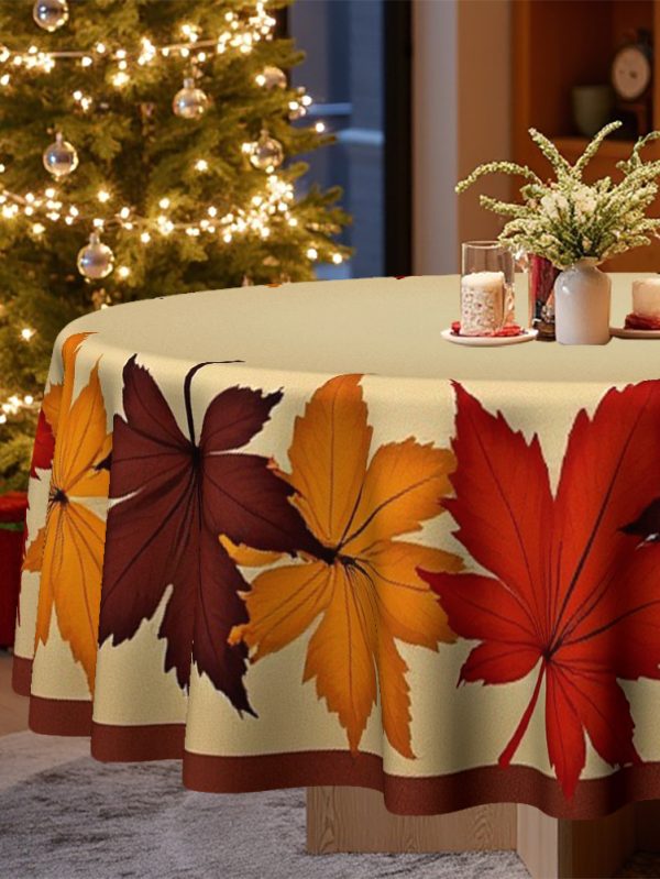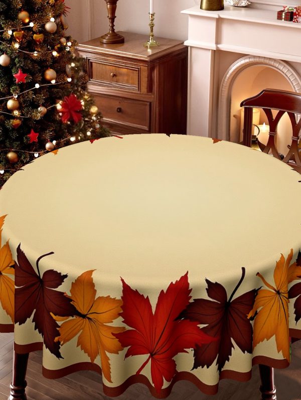 Elegant Autumn Leaf Print Round Tablecloth - Warm Brown, Orange, Red, Beige & Fall Colors, Durable Fabric for Thanksgiving, Christmas, Dining Room, Kitchen, Coffee Table Decor - Wrinkle-Resistant & Easy-Clean Seasonal Table Setting with Charming Leaf Design in Warm Hues, Ideal for Family Gatherings & Festive Home Decor, Machine-Made Round Tablecloth for All Use, Christmas Decor