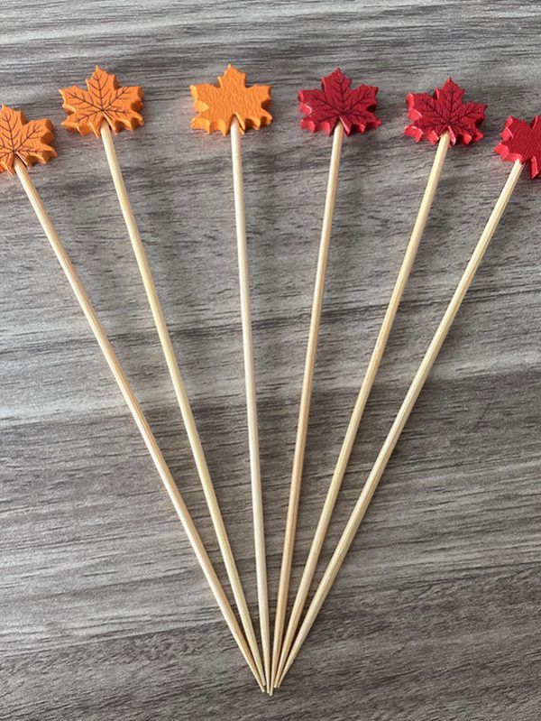 50pcs Disposable Bamboo Fruit Picks - Autumn Maple Leaf & Pumpkin-Shaped Skewers with Pointed Tips, Cartoon Style Serving Utensils for Parties, Thanksgiving, Halloween, Fall Events - Kitchen & Dining Accessories (Bulk Pack, Durable & Safe for Serving Fruits, Cheese, Desserts), Fruit Forks, Fruit Forks for Party, Toothpick For Appetizer, Toothpick For Dessert, Cocktail Stick For Appetizer, Cocktail Decoration, Charcuterie Supplie, Skewer Stick, Food Pick, Small Umbrella For Drink