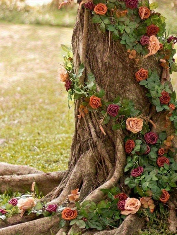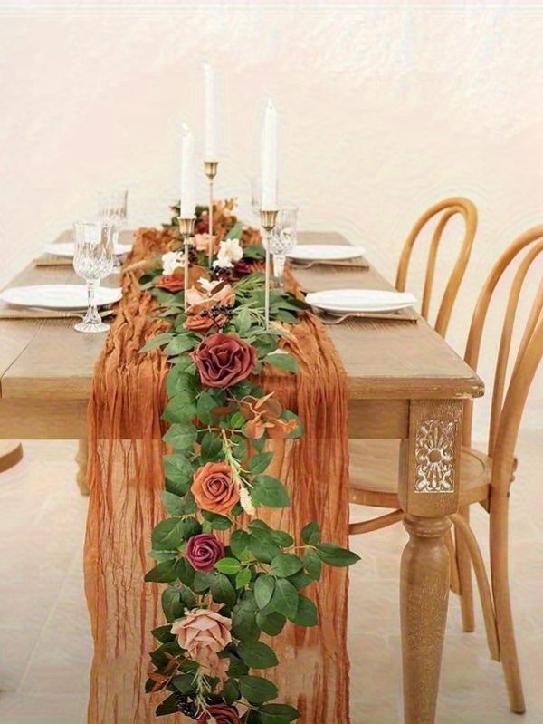 6ft Artificial Fall Wreath with Burnt Orange Roses & Eucalyptus Leaves - Realistic Plastic Vine Garland for Thanksgiving, Christmas, Wedding Decor - No Maintenance Home & Restaurant Tabletop Decoration, Fall Decorations for Home, Seasonal Decoration, Elegant Decoration, Durable Decoration, Decorative Garland, Holiday Shoppers, Christmas Decor, Festive Decor, Longlasting Decor, Event Planners