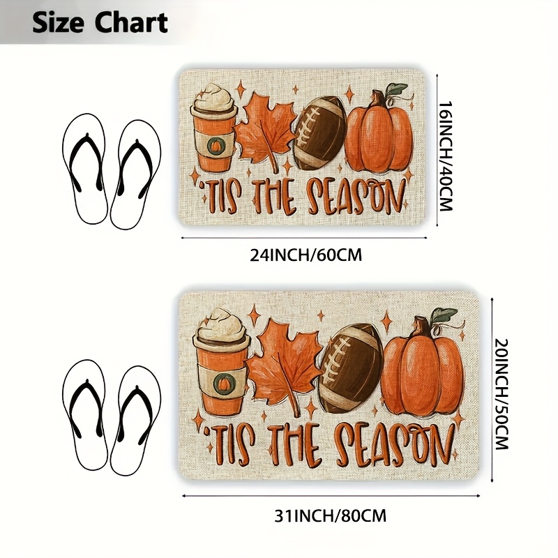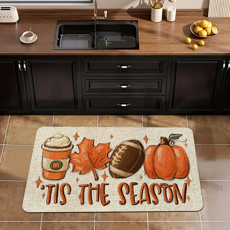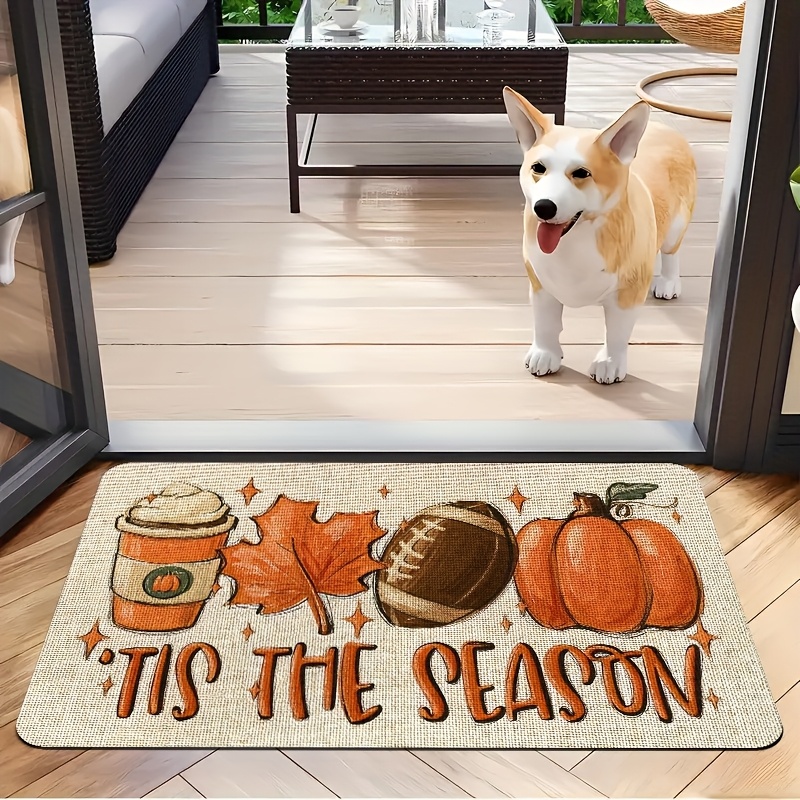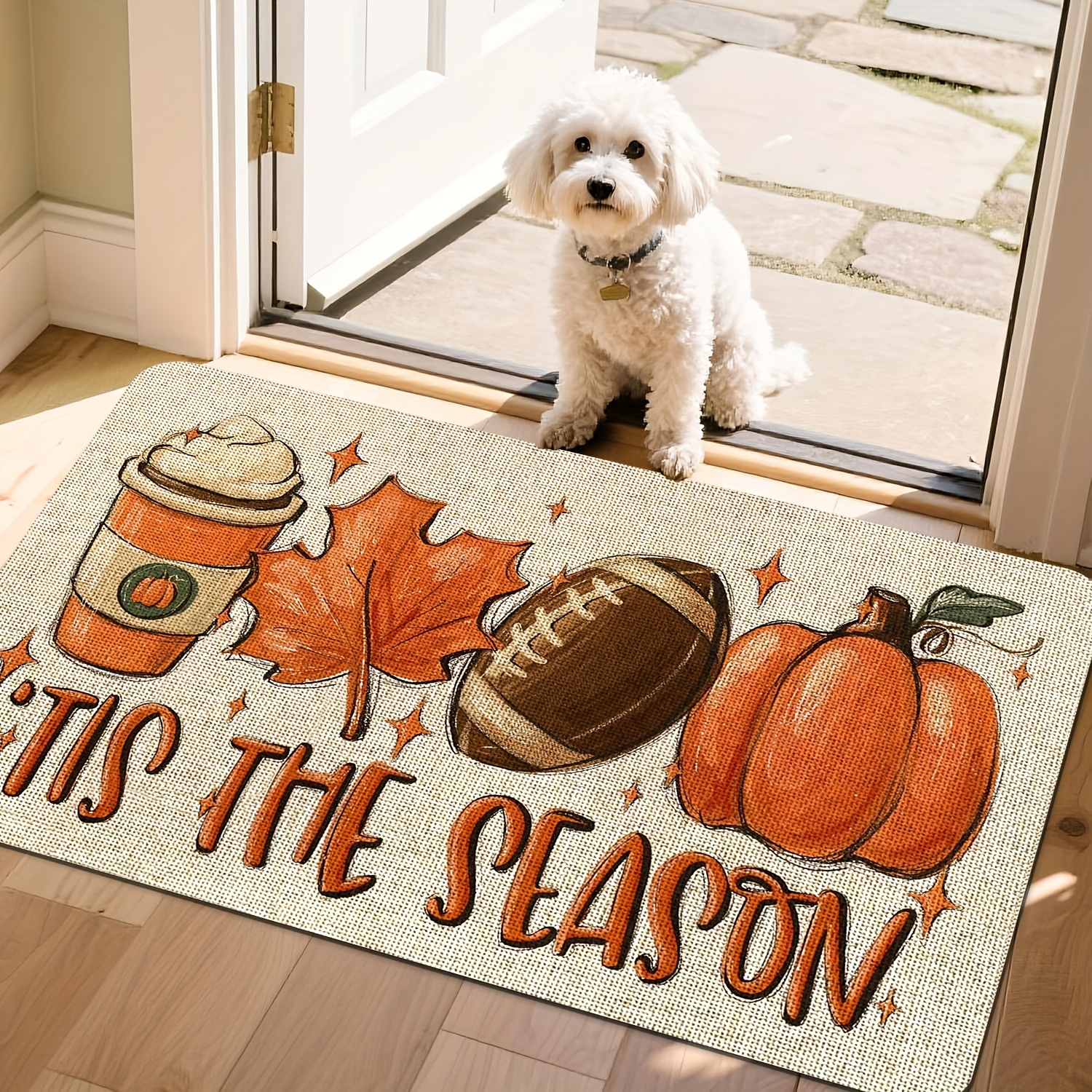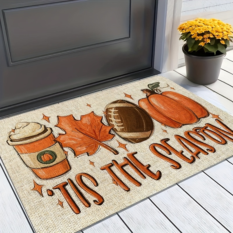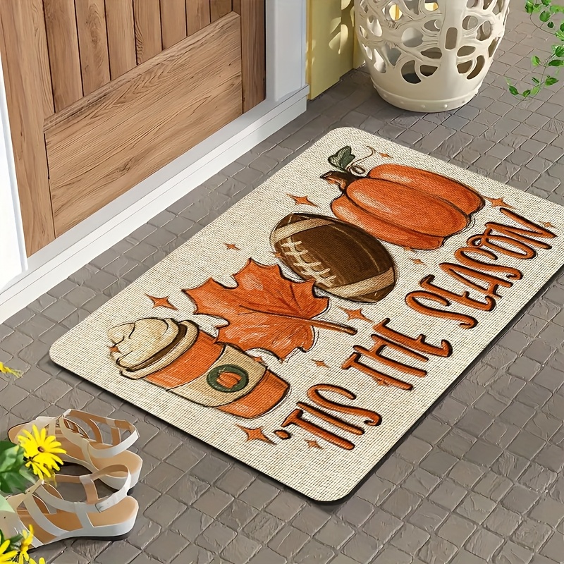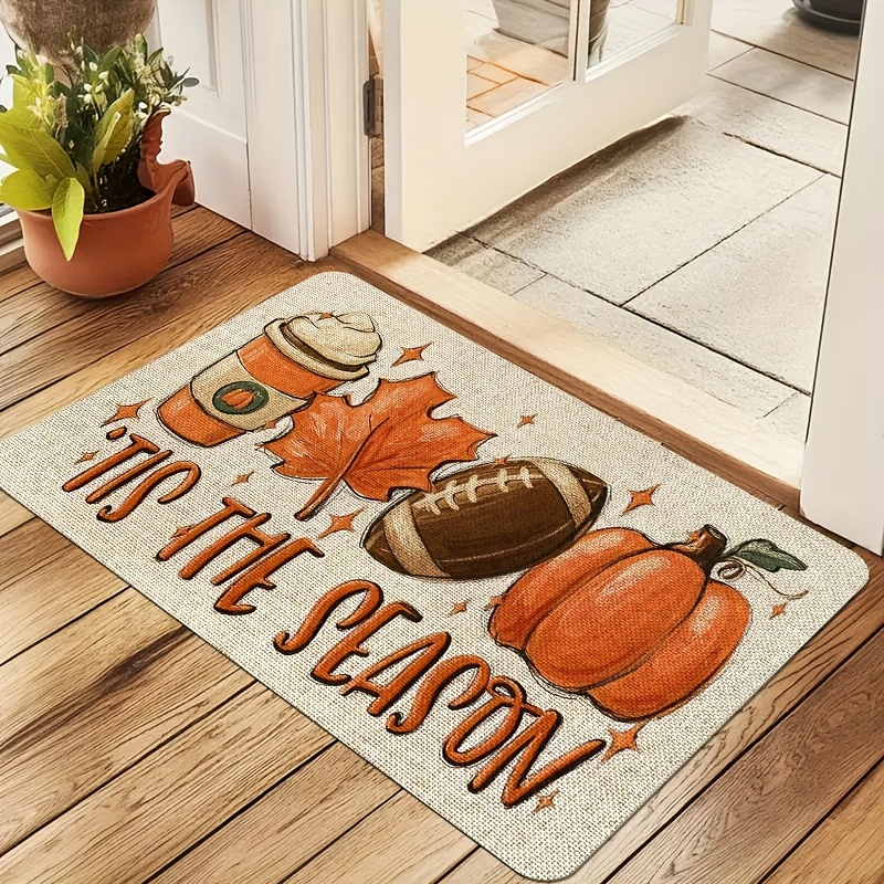 1pc Autumn Thanksgiving Welcome Mat with Maple Leaves, Pumpkins & “Tis the Season” Design – Non-Slip PVC Backing, Soft Washable Polyester Indoor/Outdoor Door Mat for Porch, Kitchen, RV – Fall Home Decor in Orange, Brown, Green, Beige & White (Machine Washable), Fall Home Decor, Outdoor Mat For Front Door, Welcome Mat For Front Door, Doormat Outdoor Entrance, Indoor Door Mat, Kitchen Mat For Floor, Outdoor Rug For Front Door, Funny Door Mat Outdoor Entrance, Front Door Mat Indoor