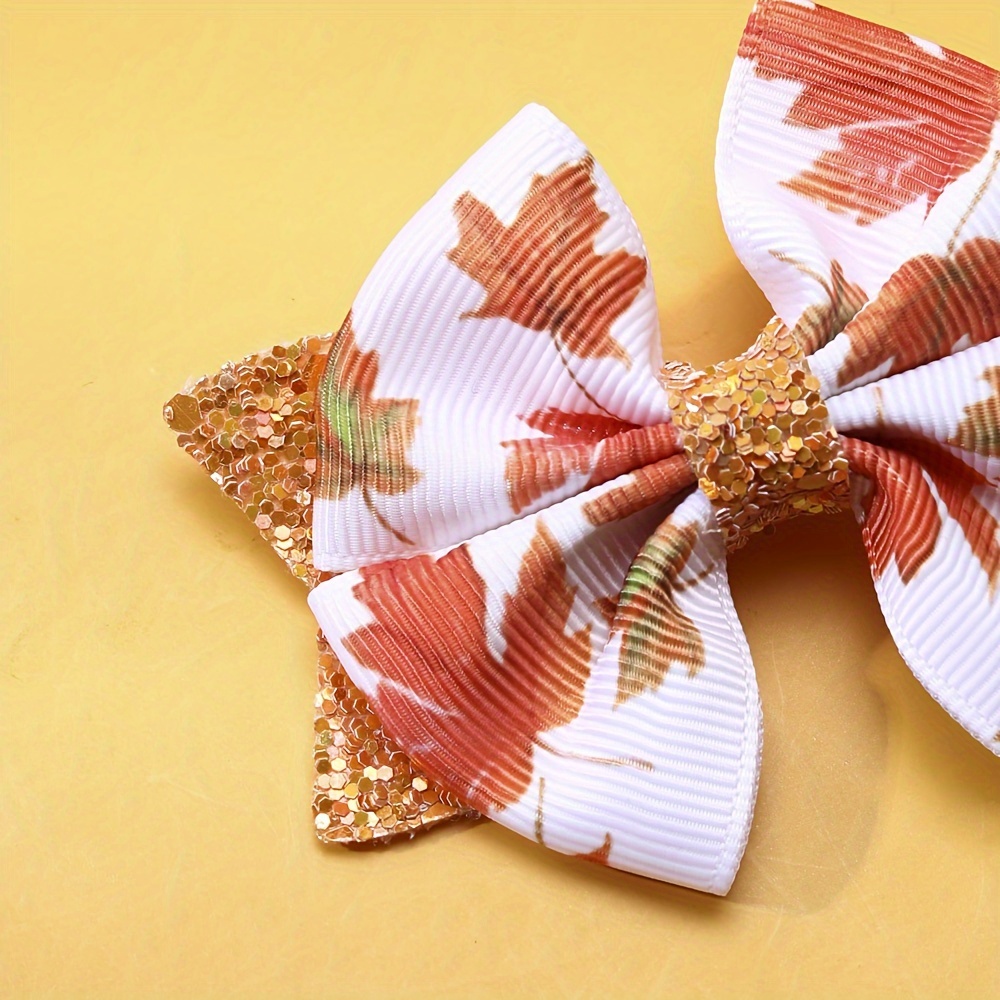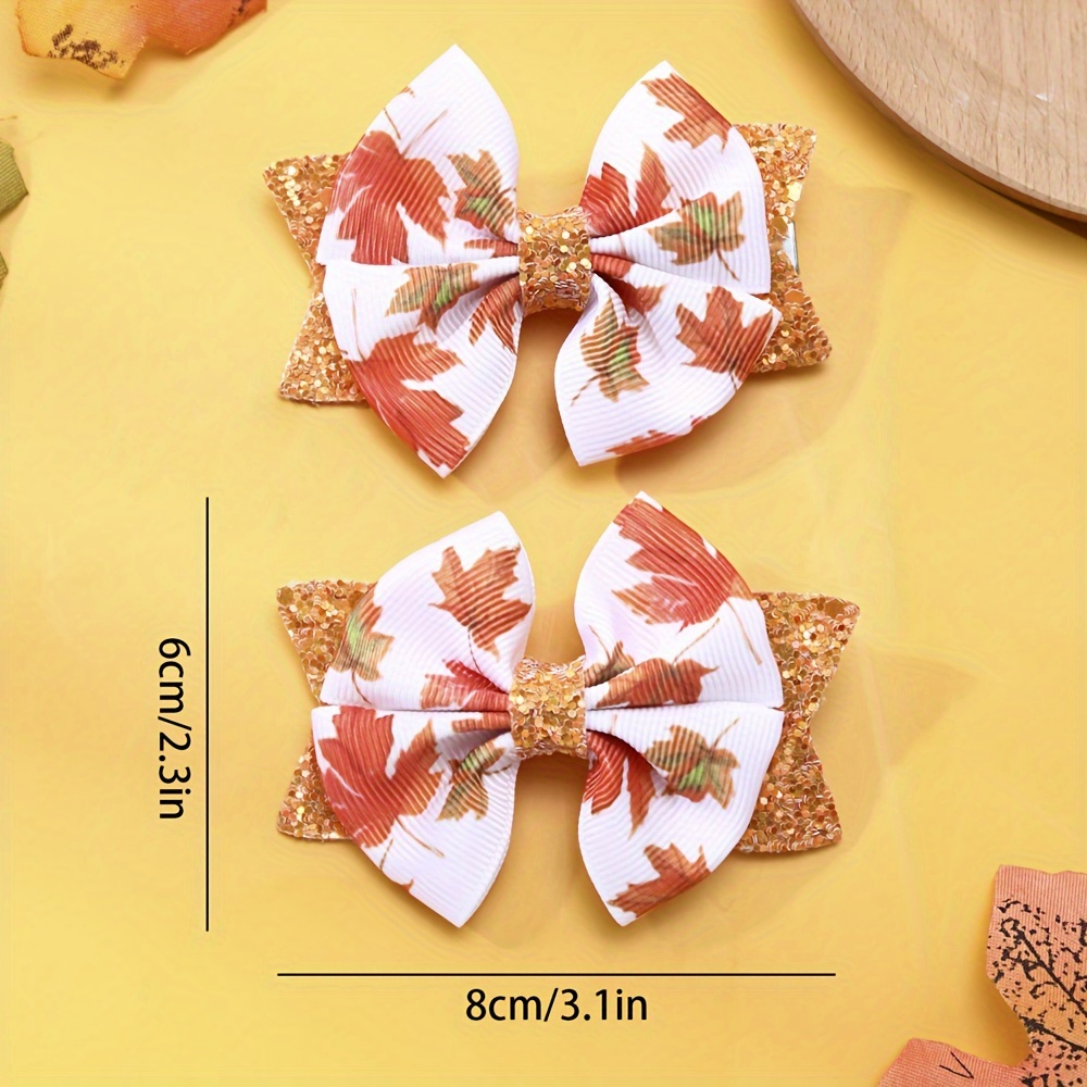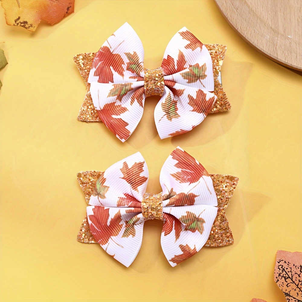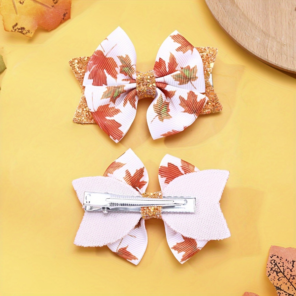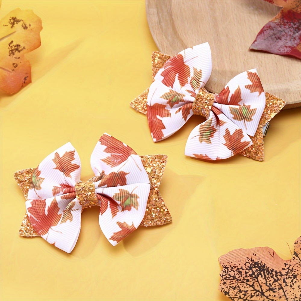 2 Pcs Fall Season Cartoon Maple Leaf Hair Bow Clips, Cute Polyester Barrettes with Glitter Detail, Teen Hair Accessories, Suitable for Over 15 Years Old – Thanksgiving Autumn Fashion Clips