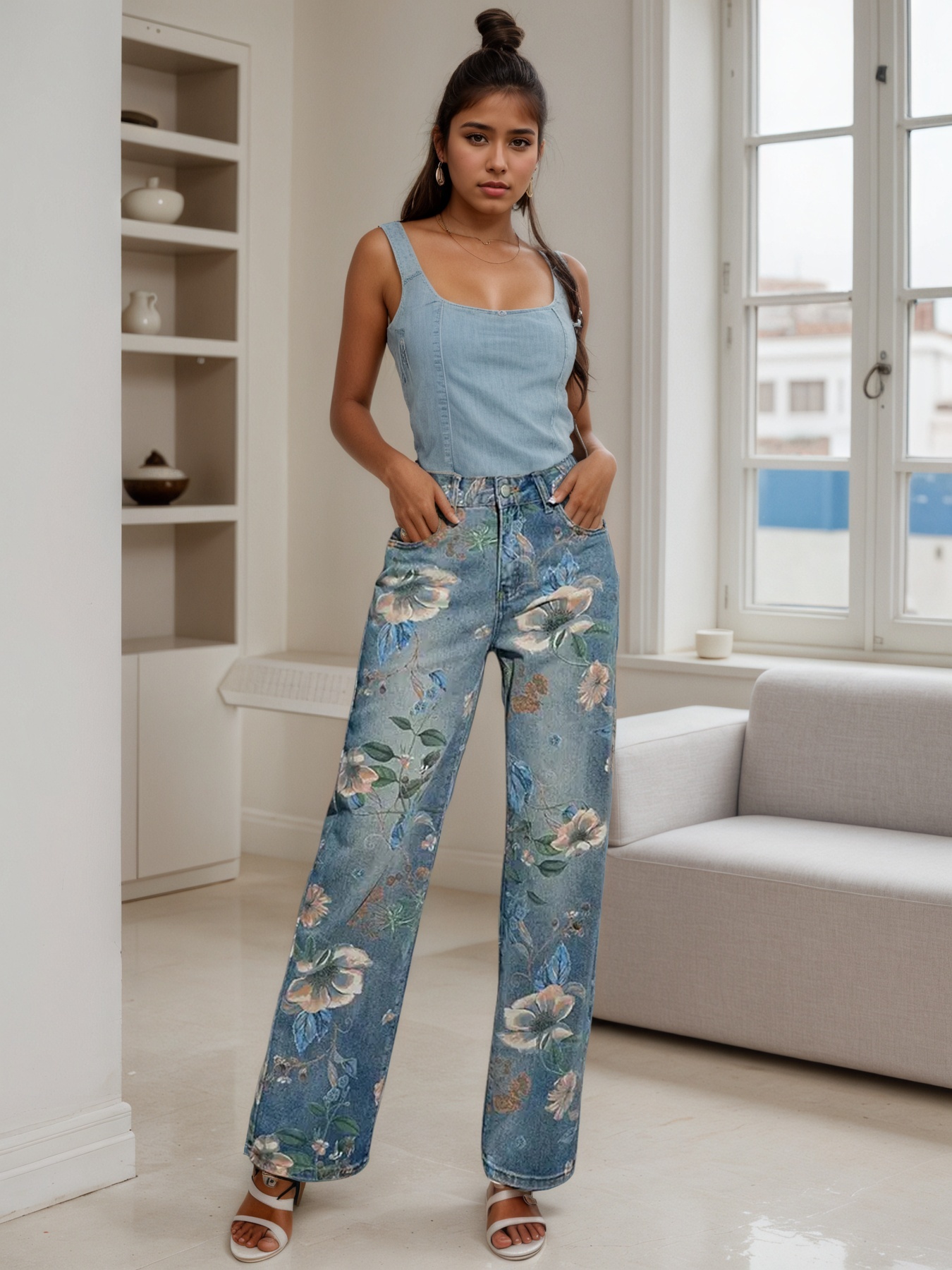 Home / Women / Jeans / 2025 New Women’s Fashion Printed Jeans, Straight Leg Loose Wide Leg Pants, Suitable For A Variety Of Wear, Spring Summer Autumn Clothing, Women’s Wear