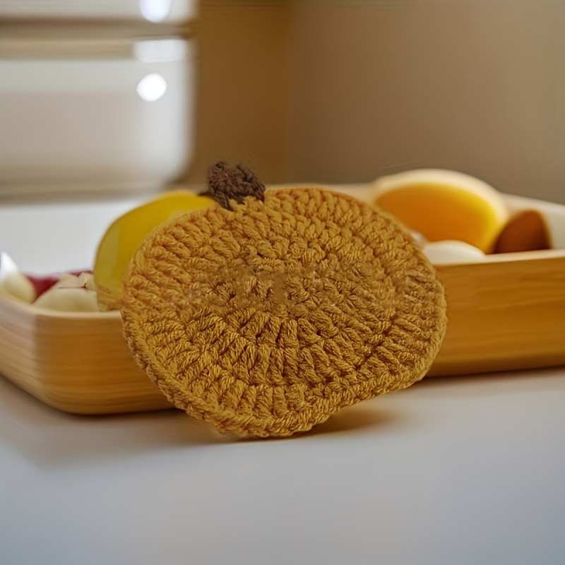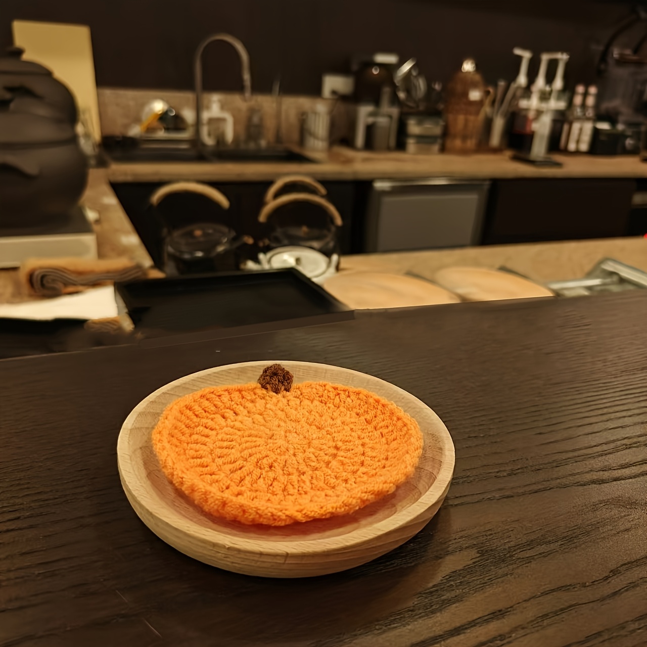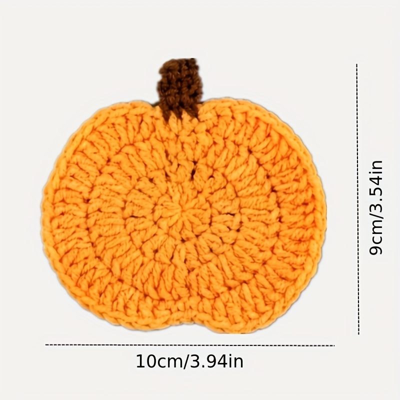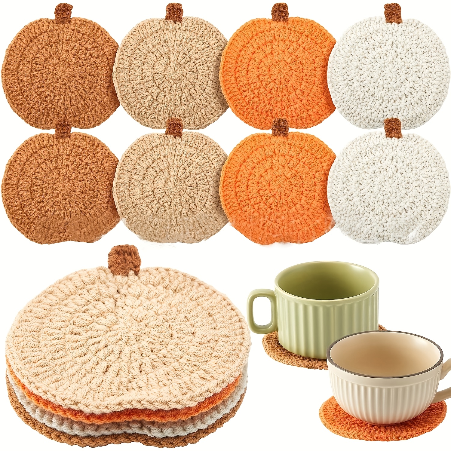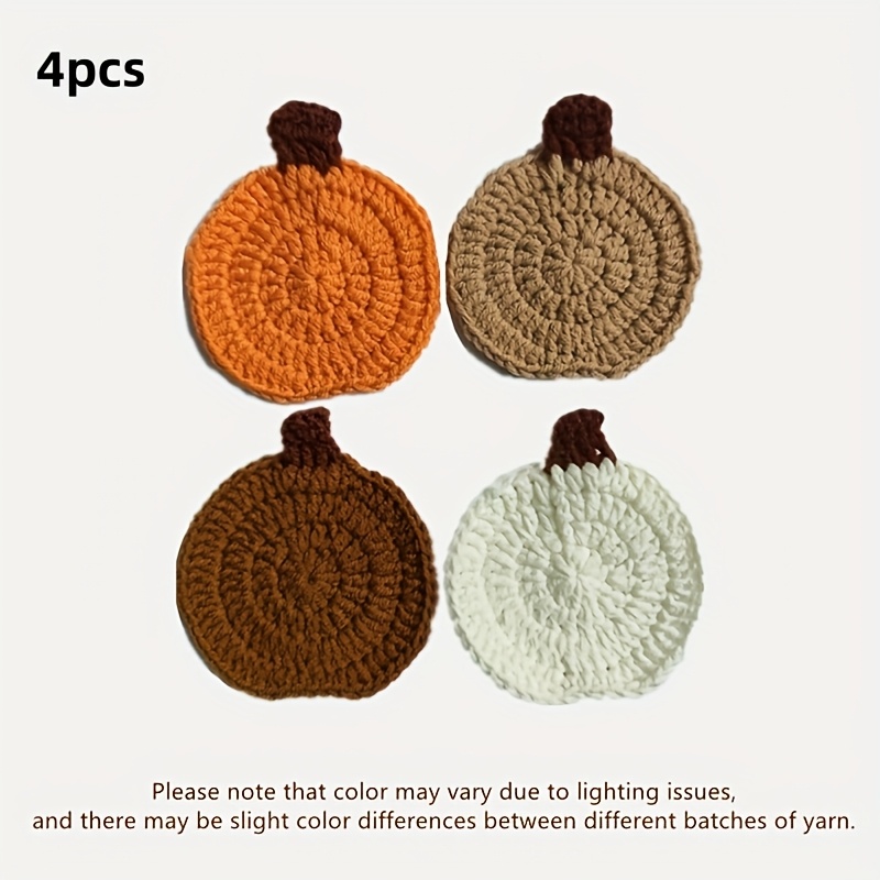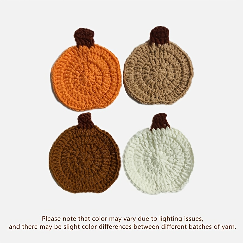 4pcs Hand-Woven Fabric Pumpkin Coasters Set – Absorbent Round Table Protectors with Fringed Edges & Hanging Loop, Beige/Brown/White/ for Halloween, Thanksgiving, Fall Table Decor – Rustic Woven Drink Coasters for Parties