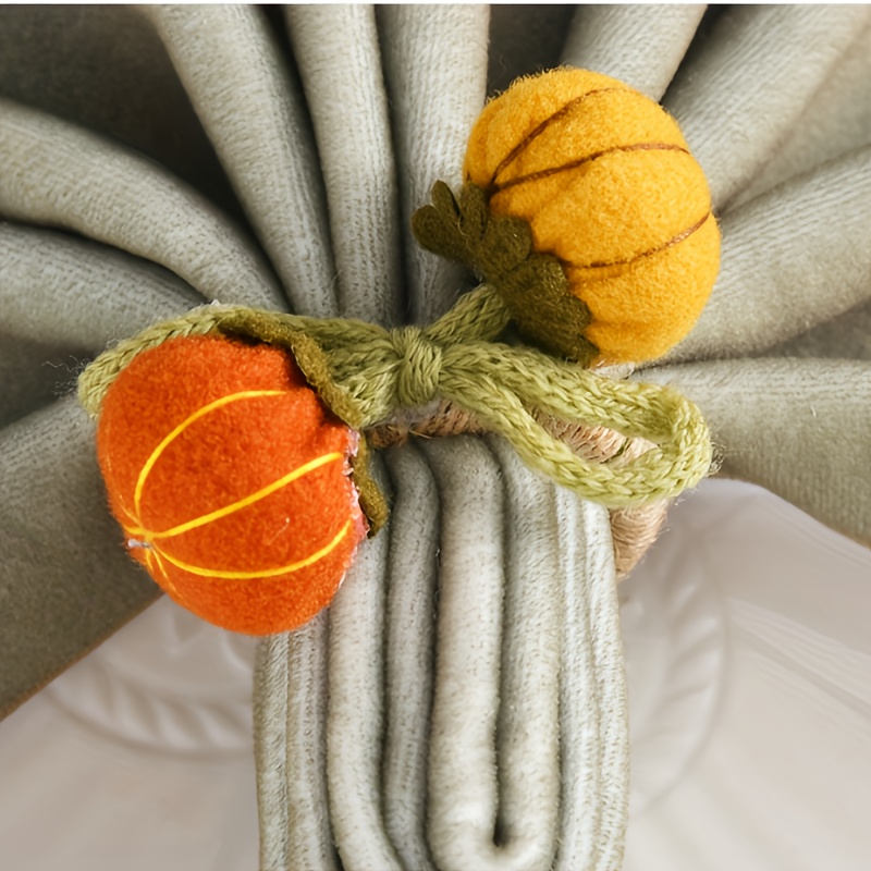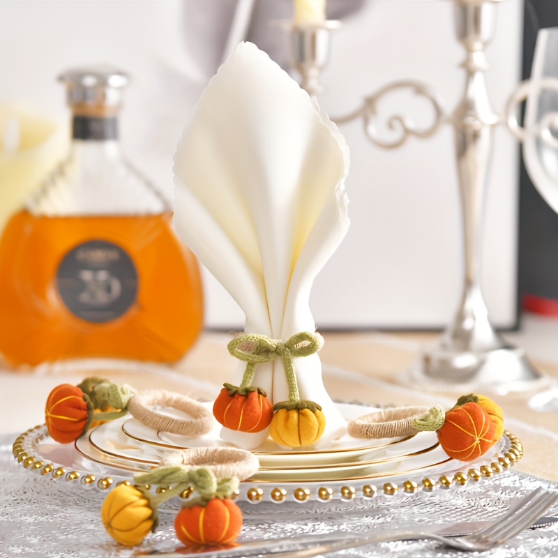 6 Thanksgiving Harvest Table Decorations Hand-woven Bow Fabric Pumpkins Pumpkin Napkin Rings Golden Brown Pumpkins Autumn, Halloween, Wedding, Party Table Decorations – Elegant Tableware Accessories