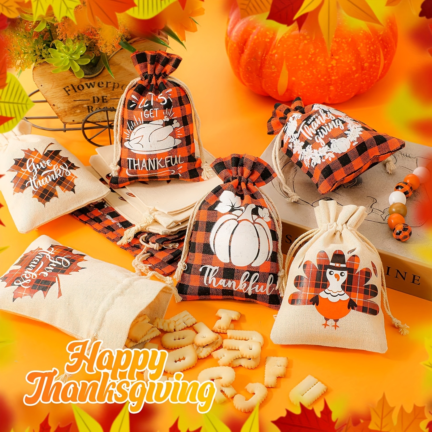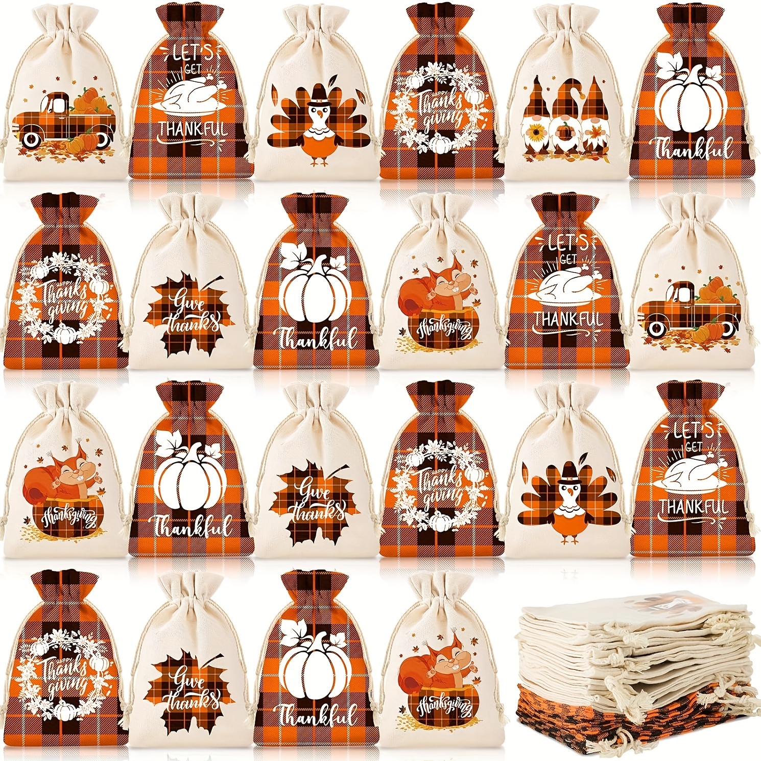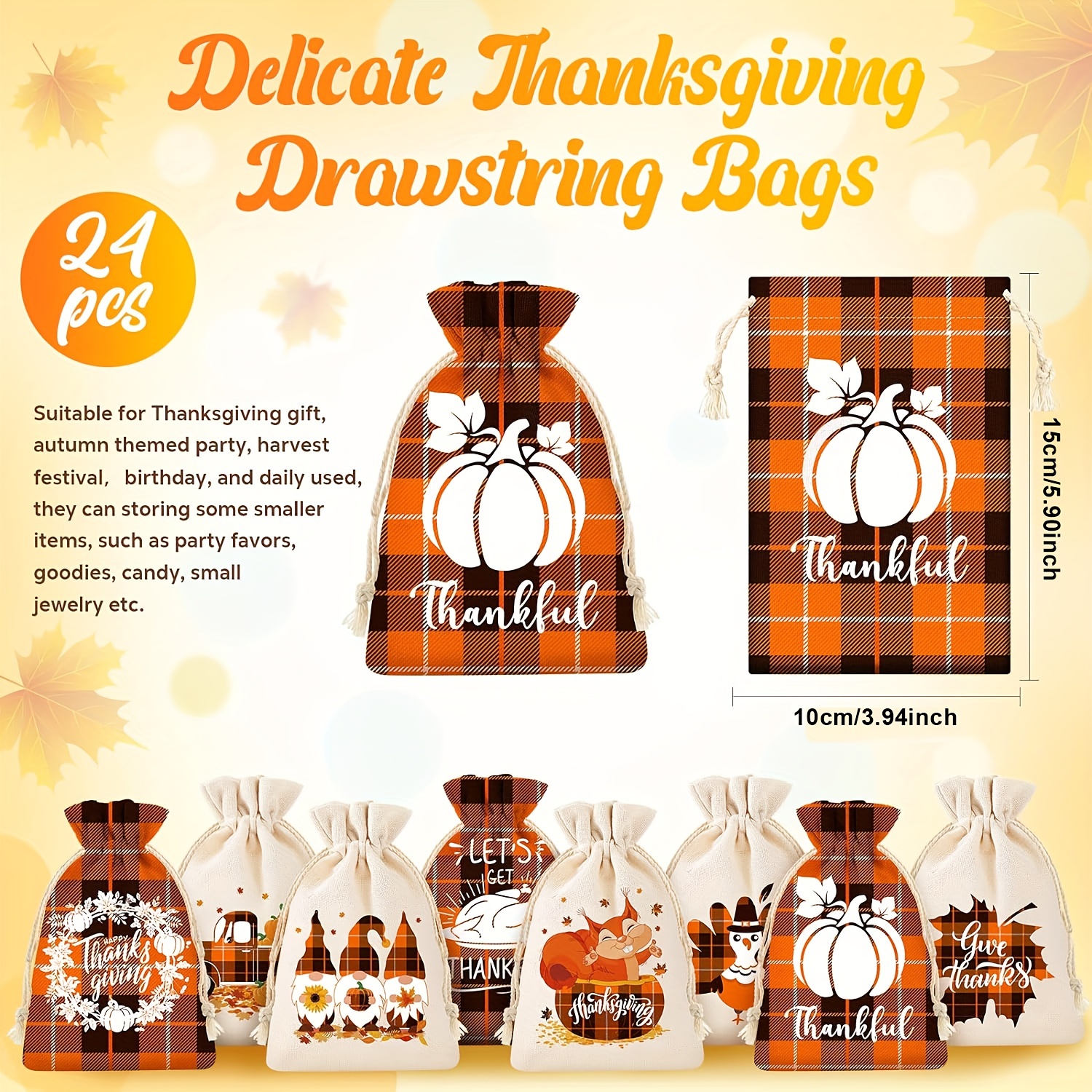 Home/Accessories/bag/[Autumn Hemp Bags] 18pcs Autumn Hemp Bags, Orange And White Checkered Satin Ribbon Drawstring Bags, Christmas Pumpkin Maple Leaf Linen Jute Gift Bags, Jewelry Bags, Valentine’s Day,St. Patrick’s Day,Easter,Thanksgiving Day Drawstring Bags Party Favors