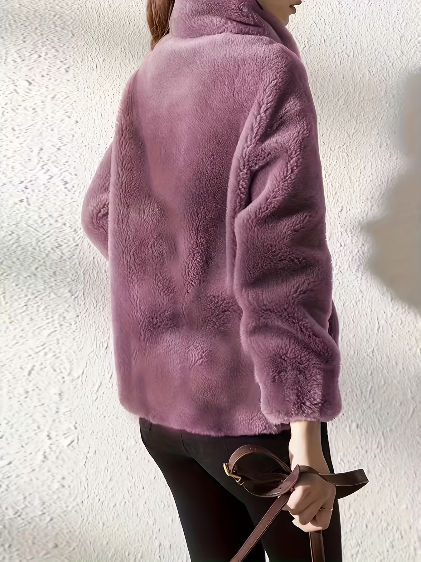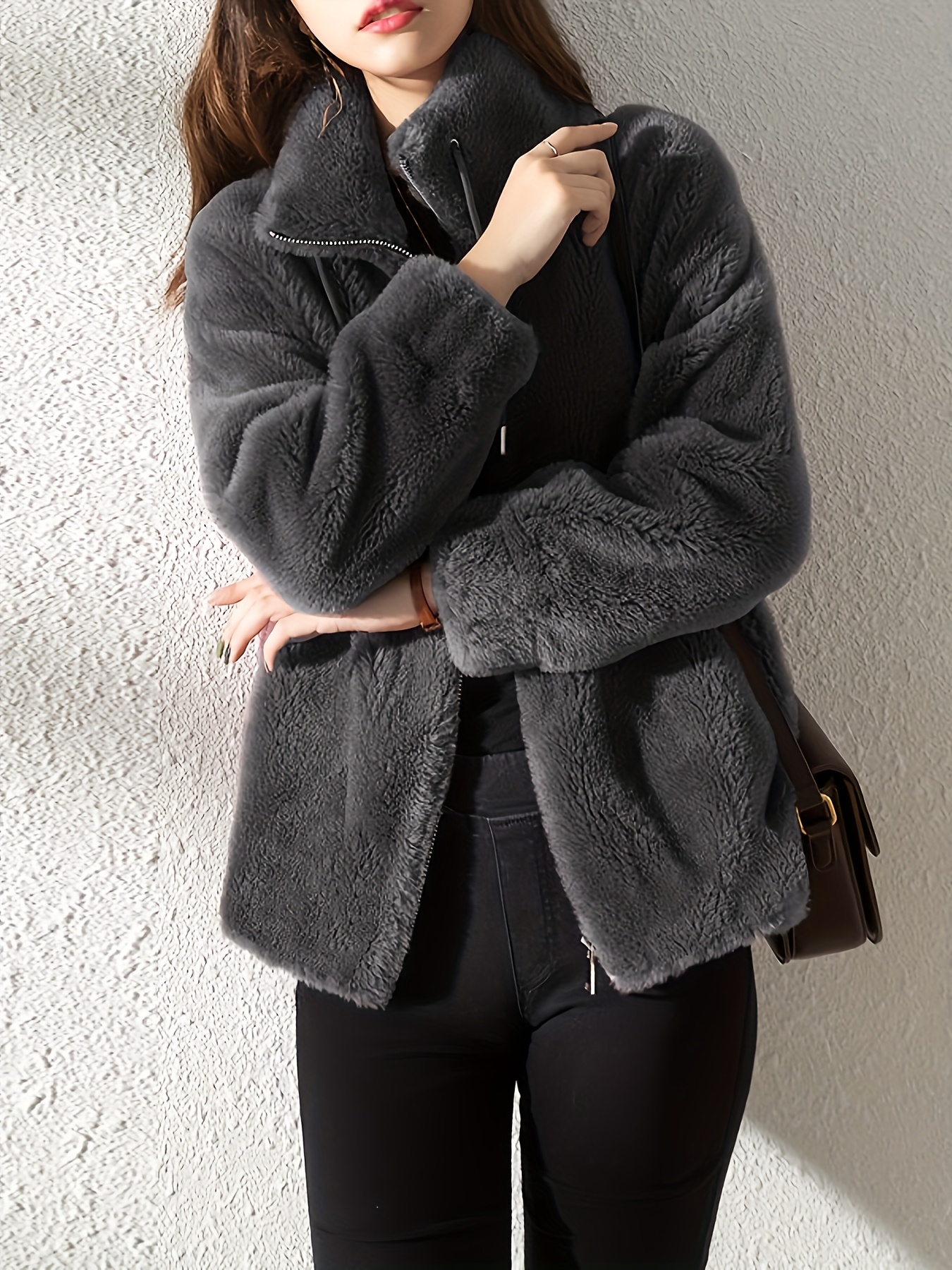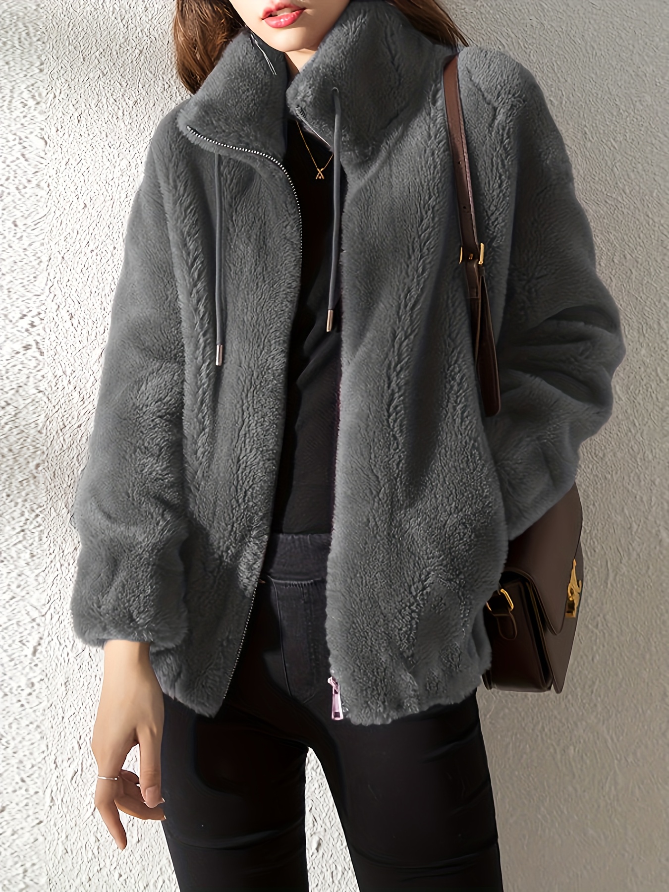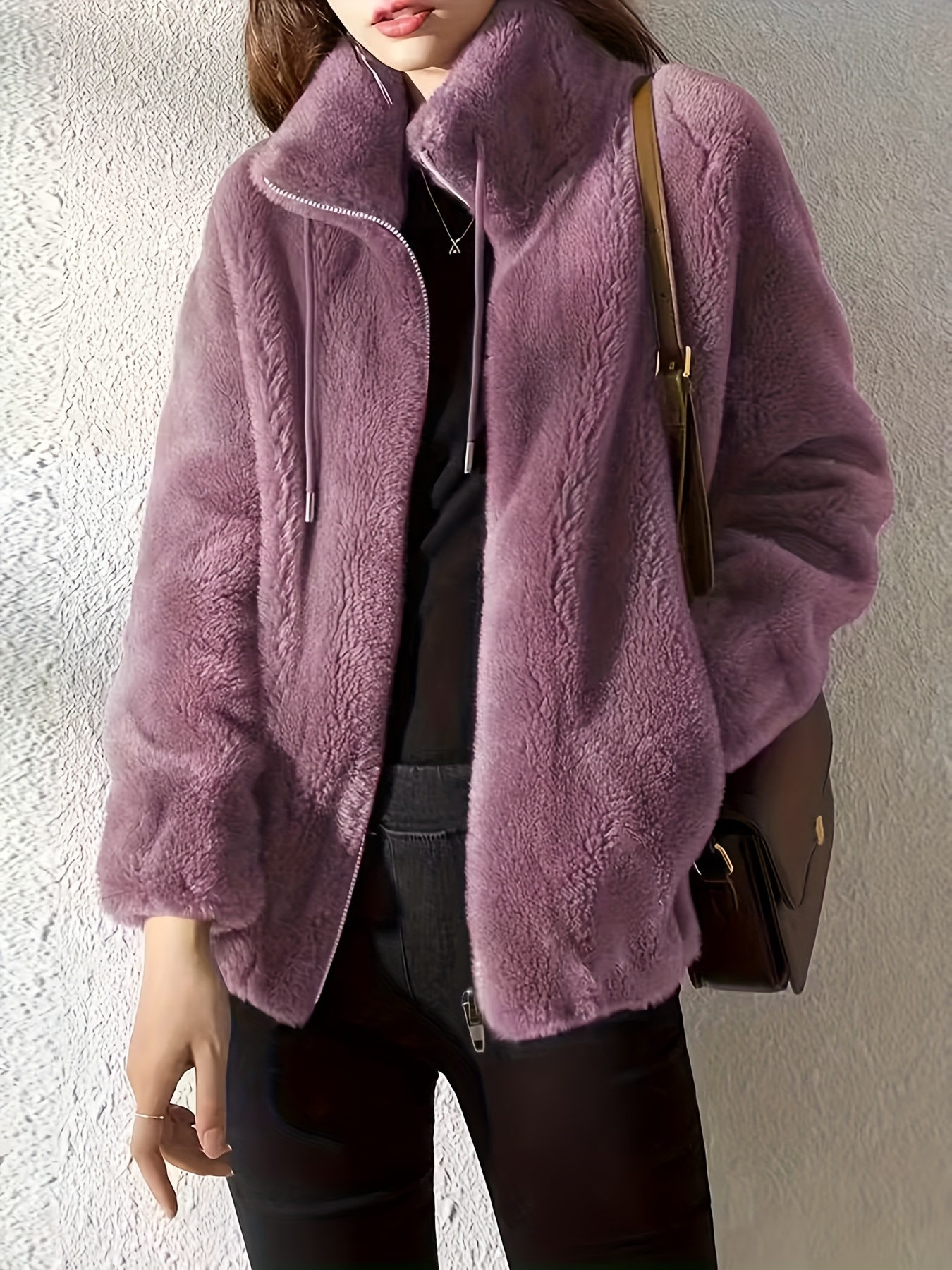 Autumn Winter Hot! Solid Color Stand Neck Zip Jacket, Soft Light Beige-Friendly Warm Design, Lazy Home & Street Fashion | Women’s Autumn Winter Clothing | Women’s Winter Coat | Casual Elegant Women’s Clothing | K-Fashion | Winter Coat