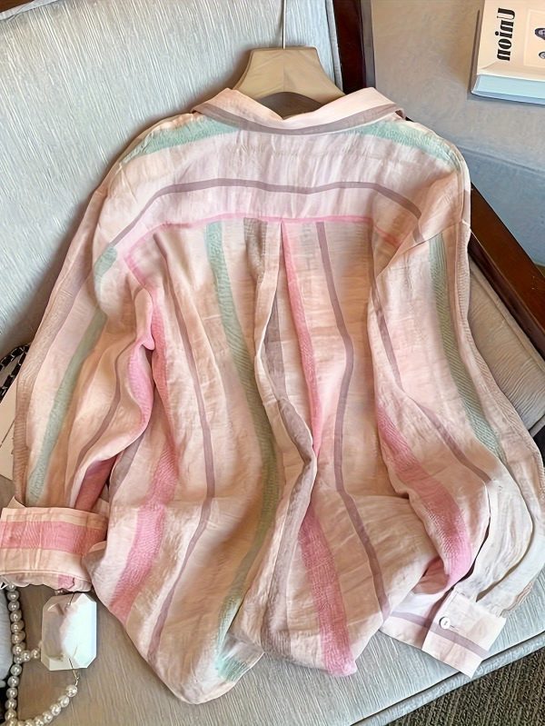 [Elegant Office Blouse] Elegant Women’s Office Blouse | Long Sleeve Button-Up Shirt in Brown/Beige/Blue/Teal/White/Black/Gray, Non-See-Through Professional Work Attire for All Seasons, Formal Events & Casual Wear, Smooth Fabric Top