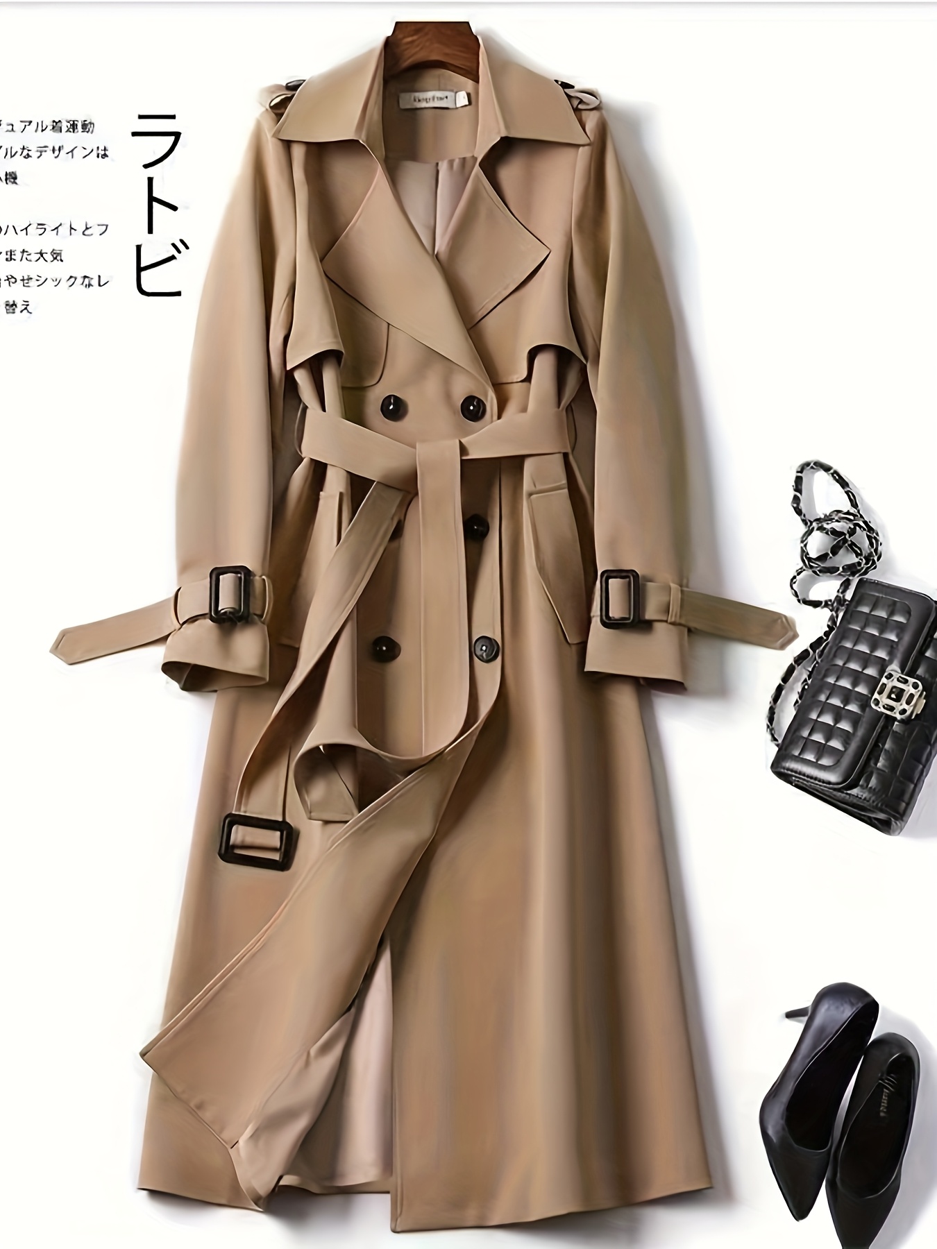 [Elegant Winter Trench Coat] Elegant & Stylish Women's British-Style Windproof Over-the-Knee Coat | Long Trench Coat with Belted Waist & Button Front, Solid Color, Perfect for Fall/Winter, Versatile for Casual or Formal Occasions, Winter Outerwear, Structured Design, Durable Fabric