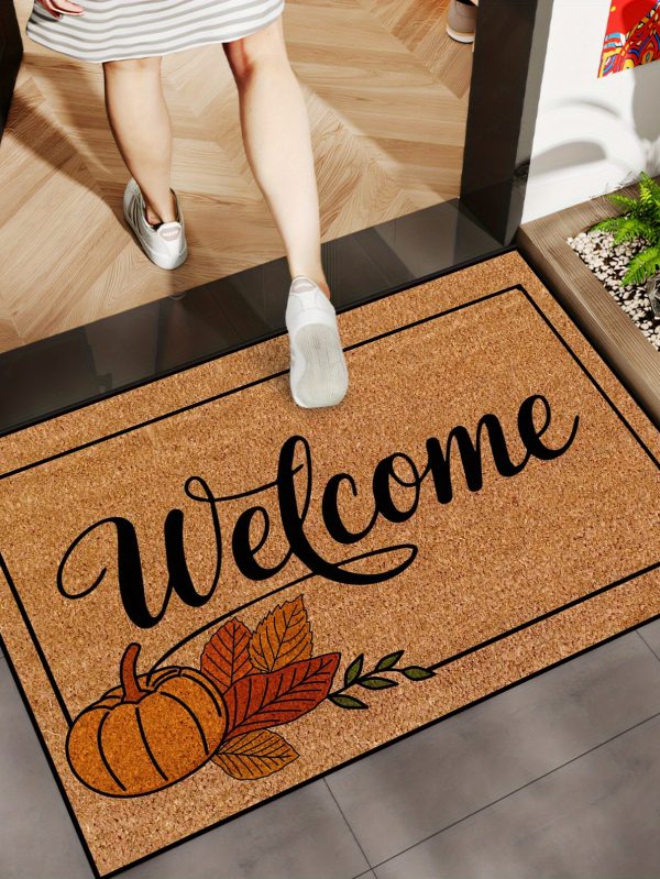 1pc Autumn Harvest Welcome Mat - Non-Slip, Machine Washable Doormat with Pumpkin & Leaf Design, Perfect for Kitchen, Dining Room, Hallway, Bathroom, Bedroom, Parties, and Garden Decor, Fall Decorations for Home