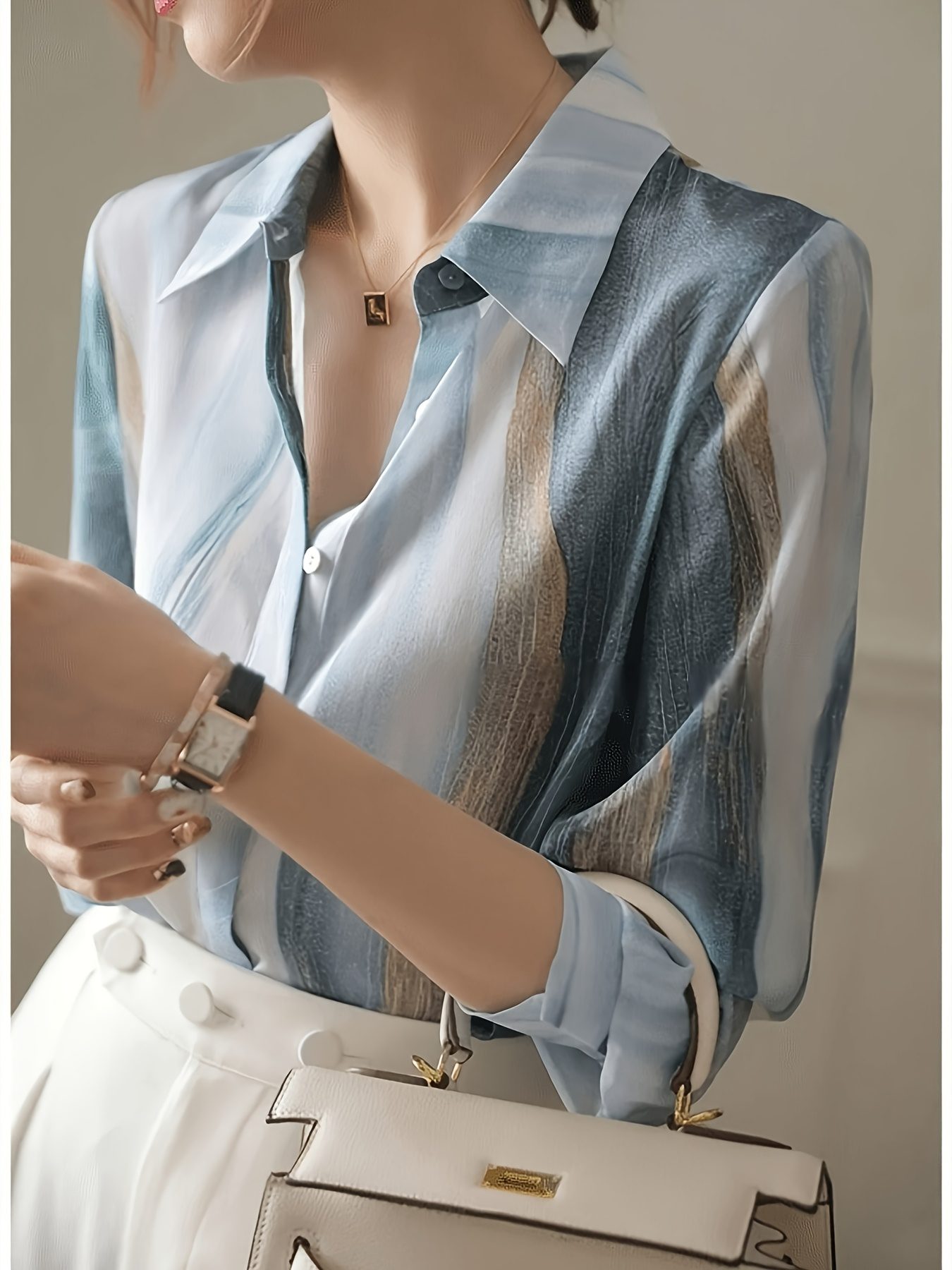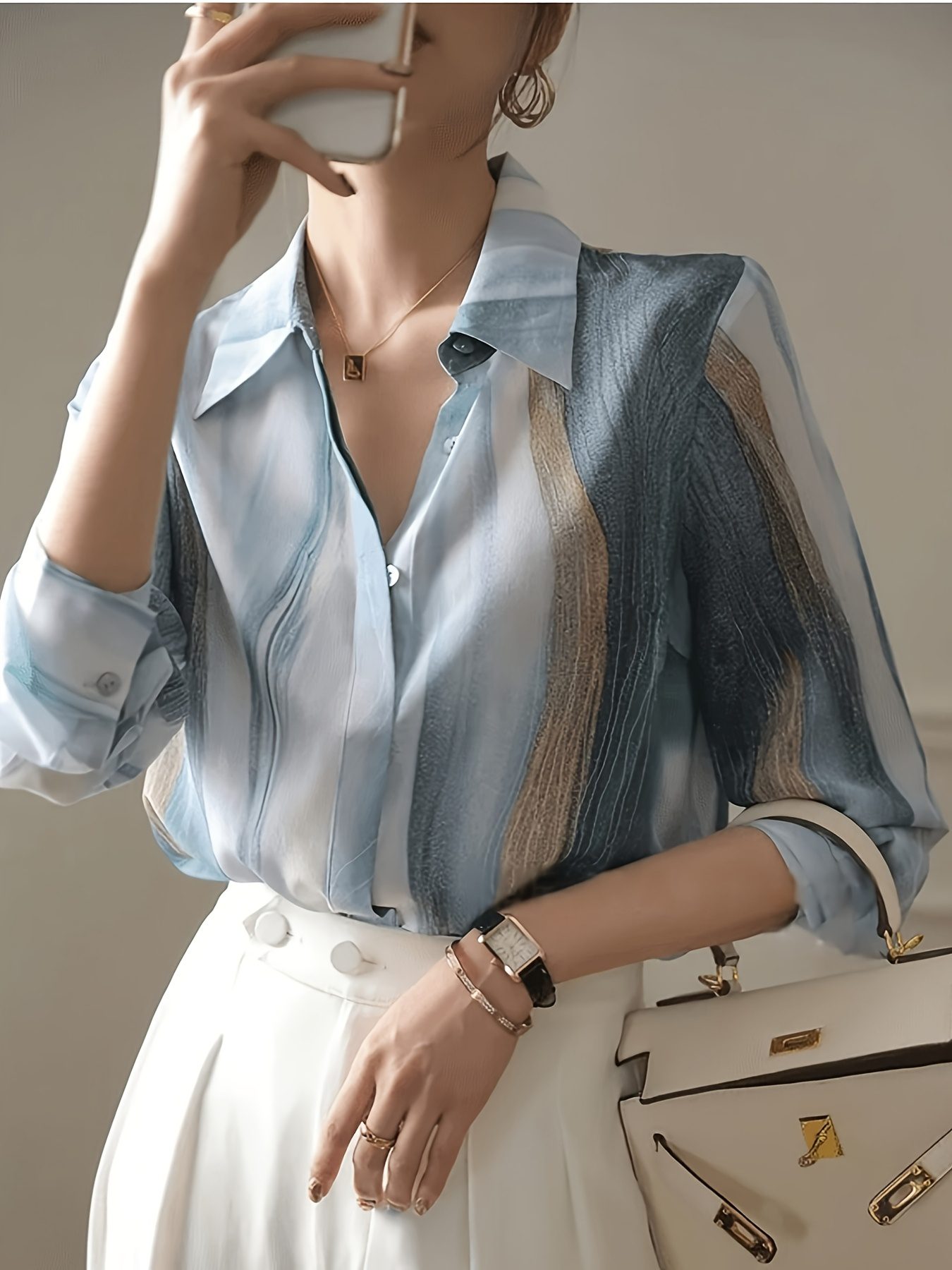 Lightweight Elegant Summer Women’s Short Sleeve Printed Blouse – Loose Fit, Button-Up Shirt with Lapel Collar for Casual Outings, Casual Attire|Modern Casualwear|Single Breasted Shirt