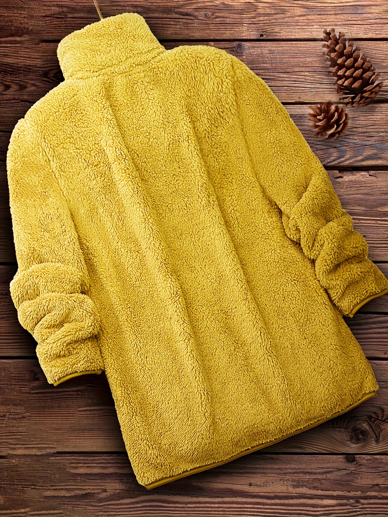 [Long Sleeve Winter Teddy Coat] Zip Up Solid Teddy Coat, Casual Long Sleeve Winter Outerwear, Women’s Clothing