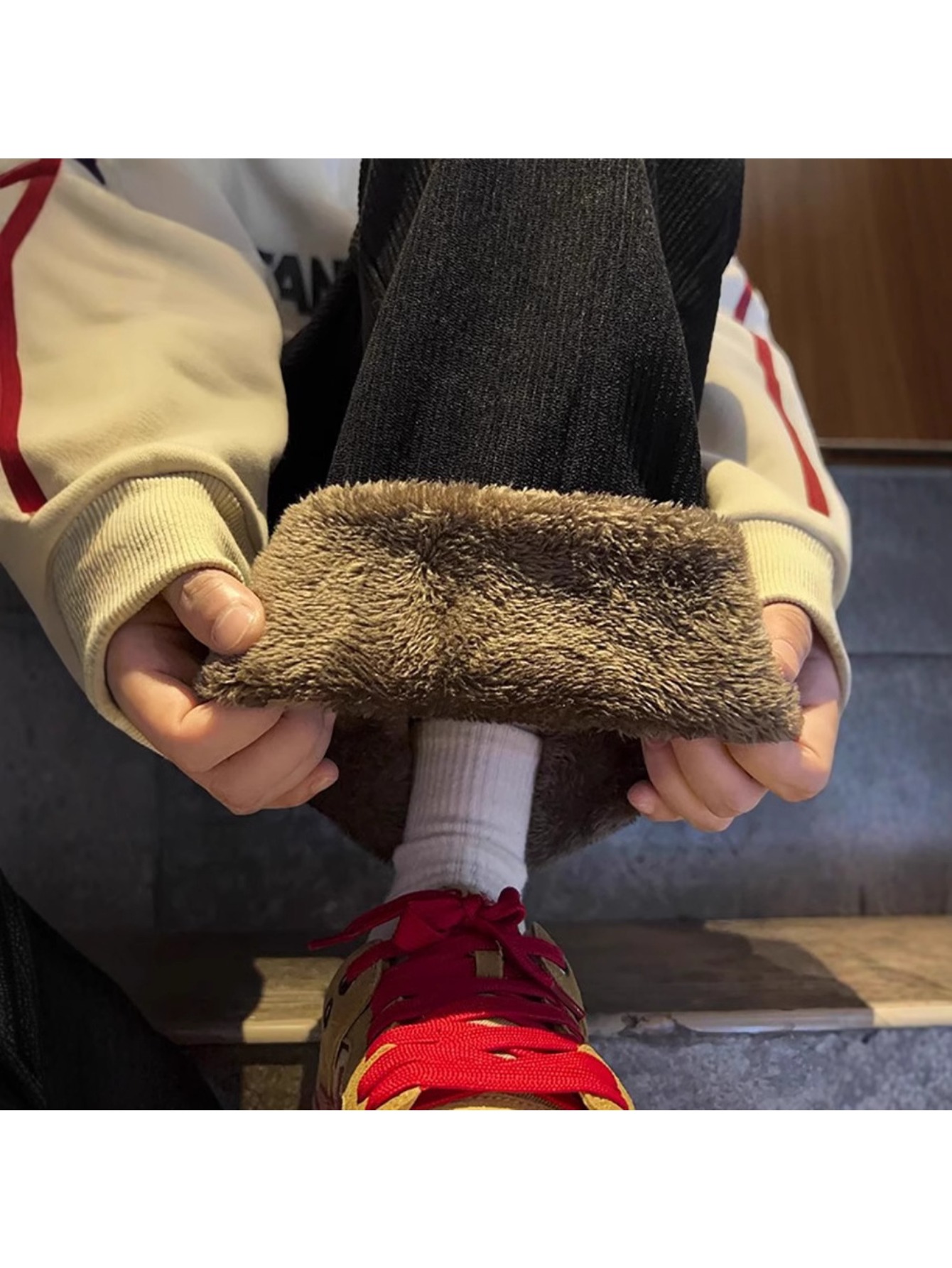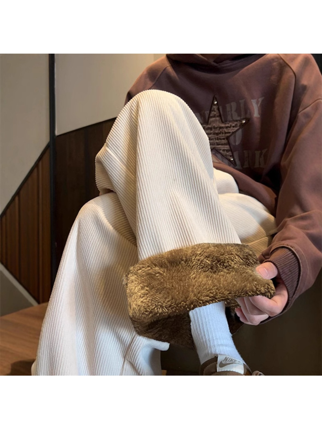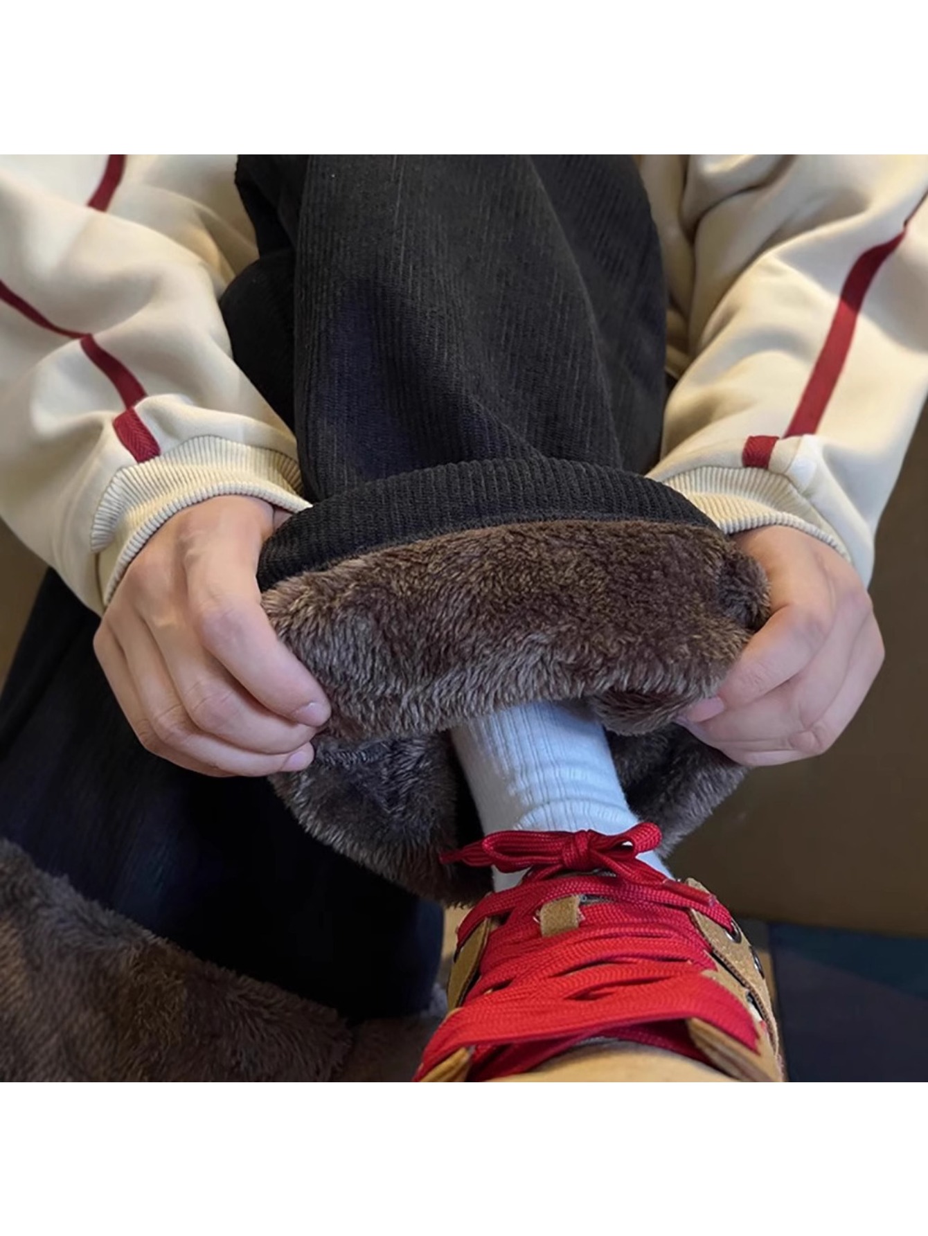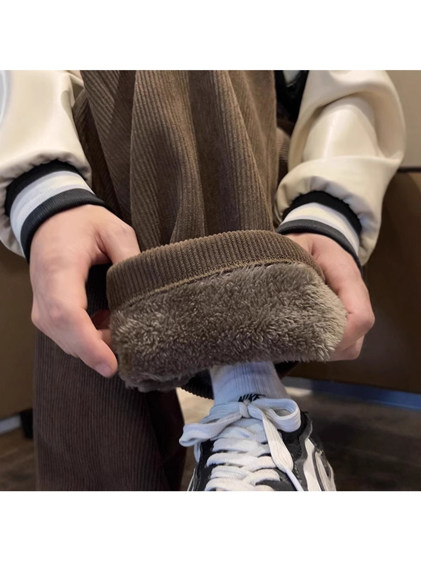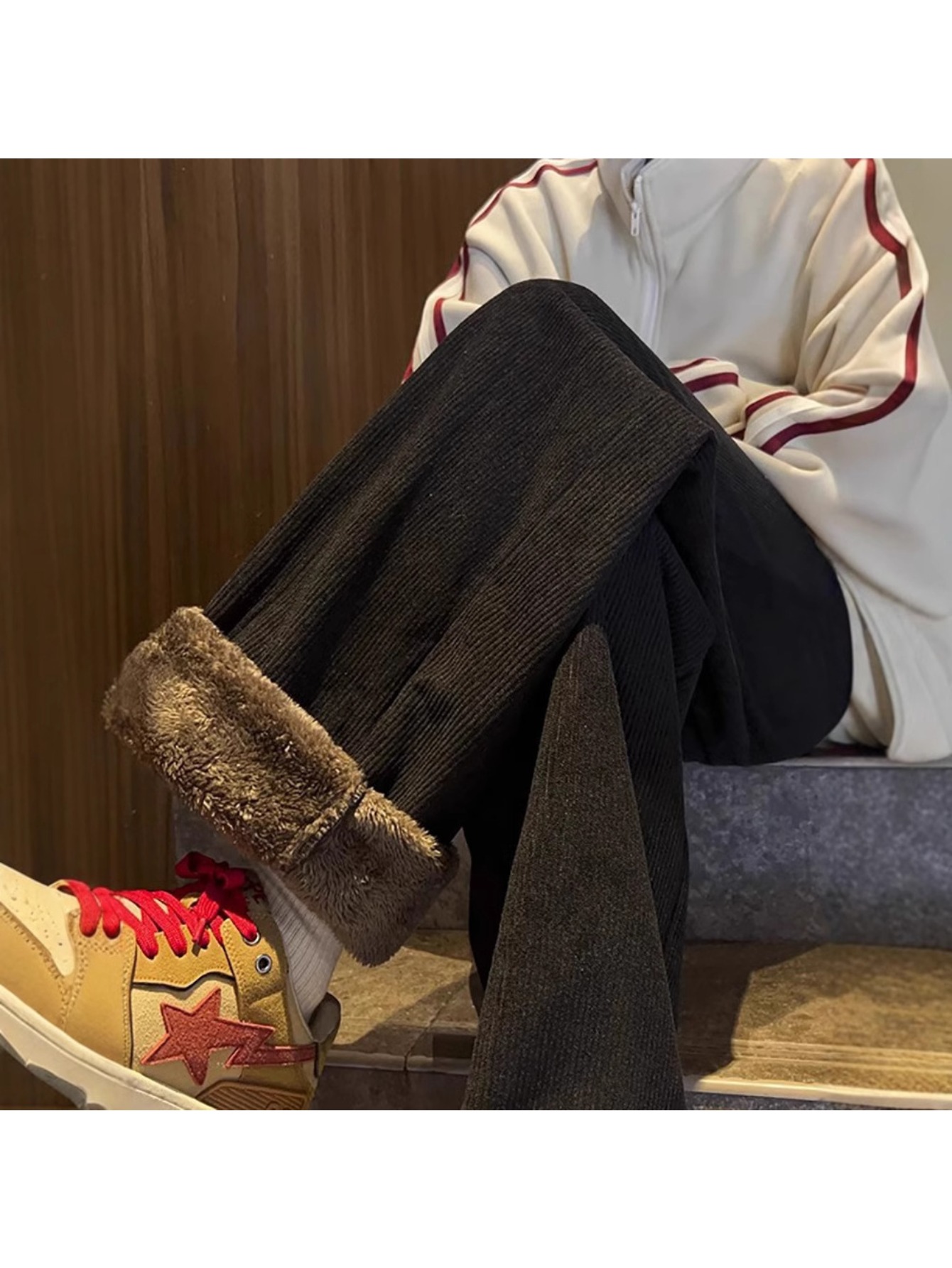 Men’s Ultra-Thick Corduroy Fleece Pants with Integrated Lamb Fleece-Like – Wide-Leg Winter Trousers, Warm Casual & Dress Pants for Cold Weather, Hand Washable (No Zippers/C Buttons) – Brown/Beige