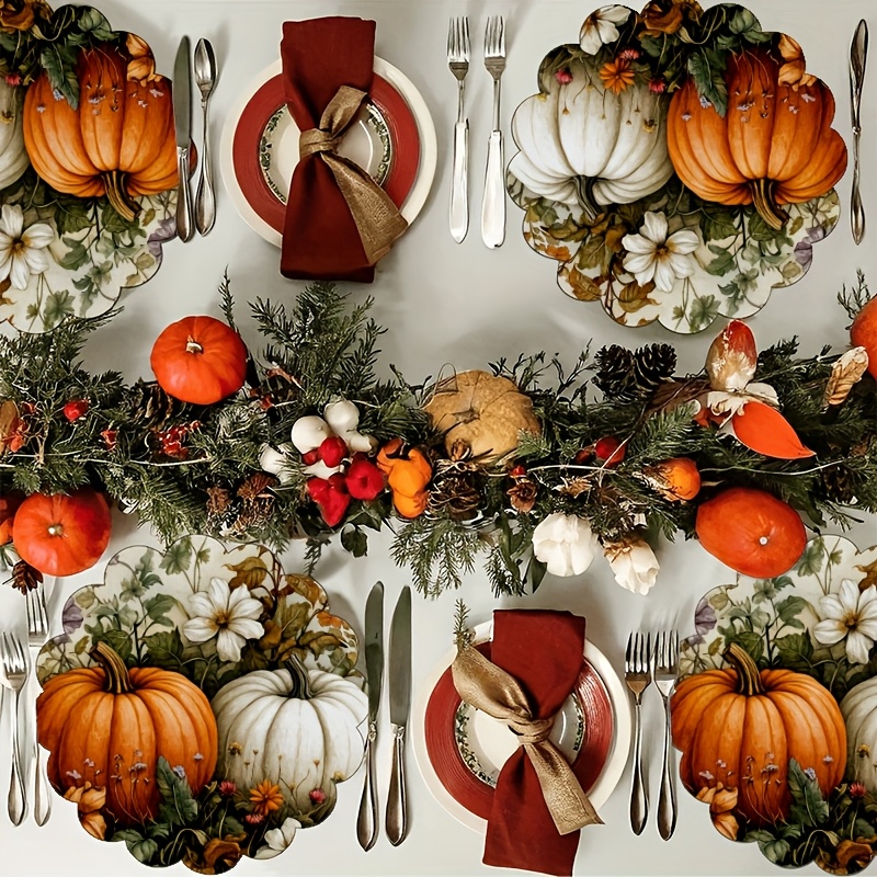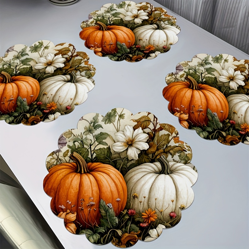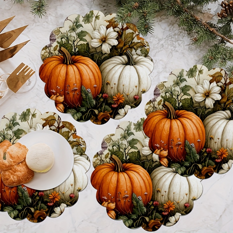 Set of 4 Fall Linen Round Placemats – Pumpkin and Floral Thanksgiving Table Decorations, 15 Inches for Autumn Dining, Holiday Tableware Accessories, Exquisite Tablecloths, Durable Home Entertaining Items, Fall Table Setting, Seasonal Home Decor