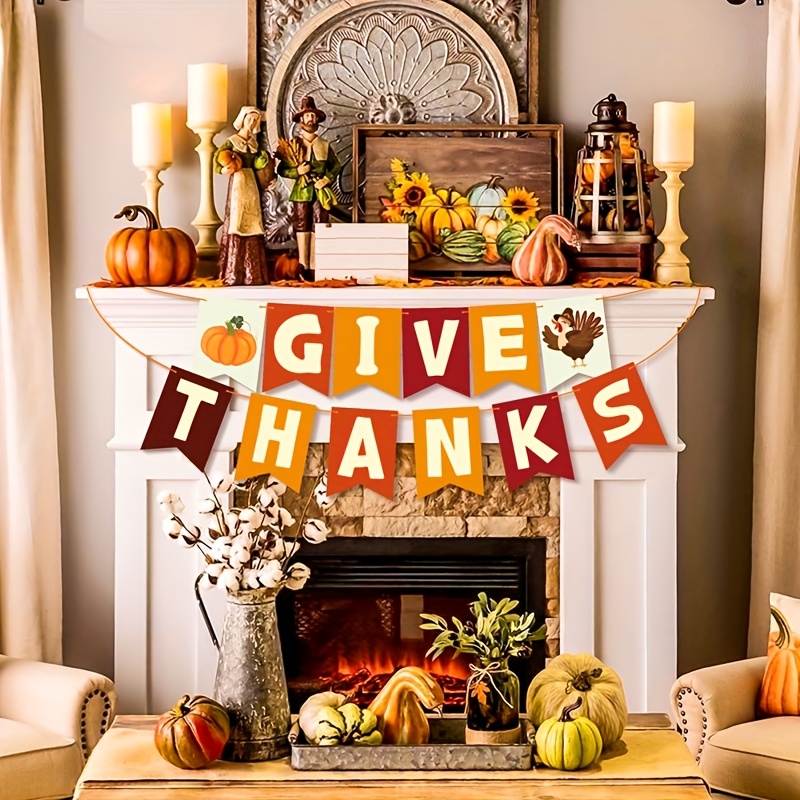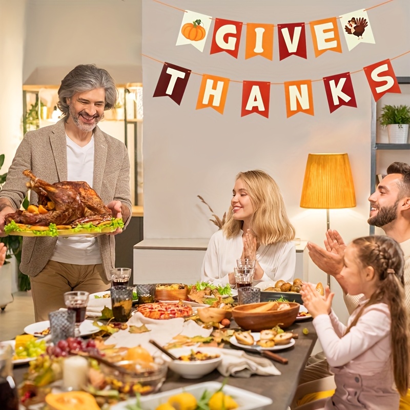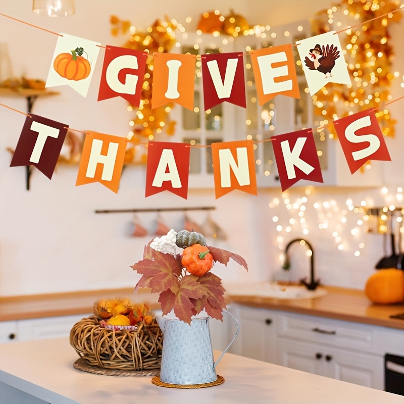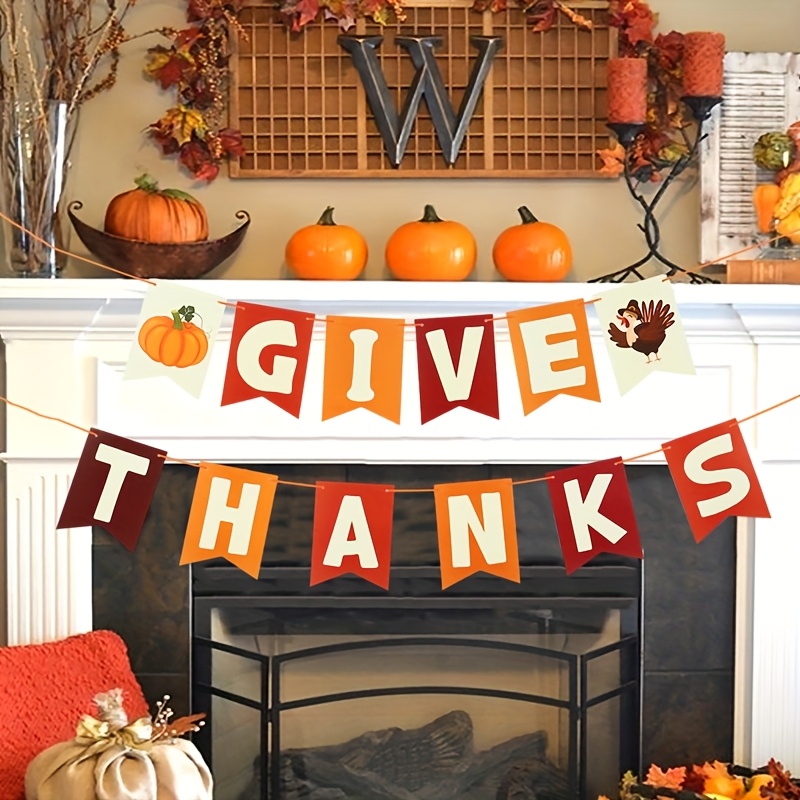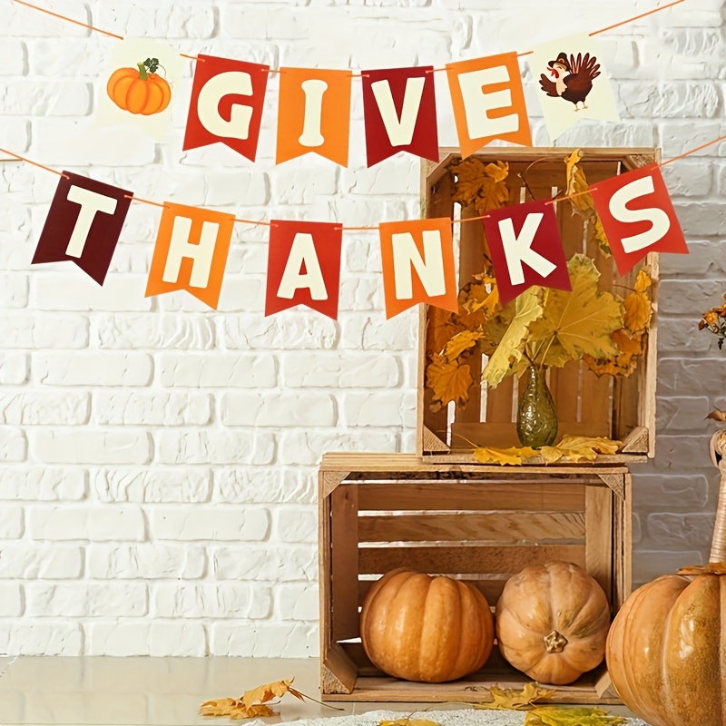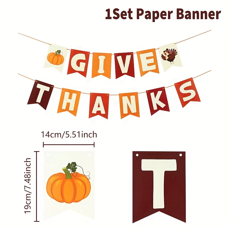 Home/Thanks Giving/[Thanksgiving Paper Banner] 1set, Thanksgiving Paper Banner, Autumn Fall Thanksgiving “Give Thanks” Pumpkin & Turkey Hanging Paper Banner Flag, Perfect Thanksgiving Fall Season Backdrop Decoration