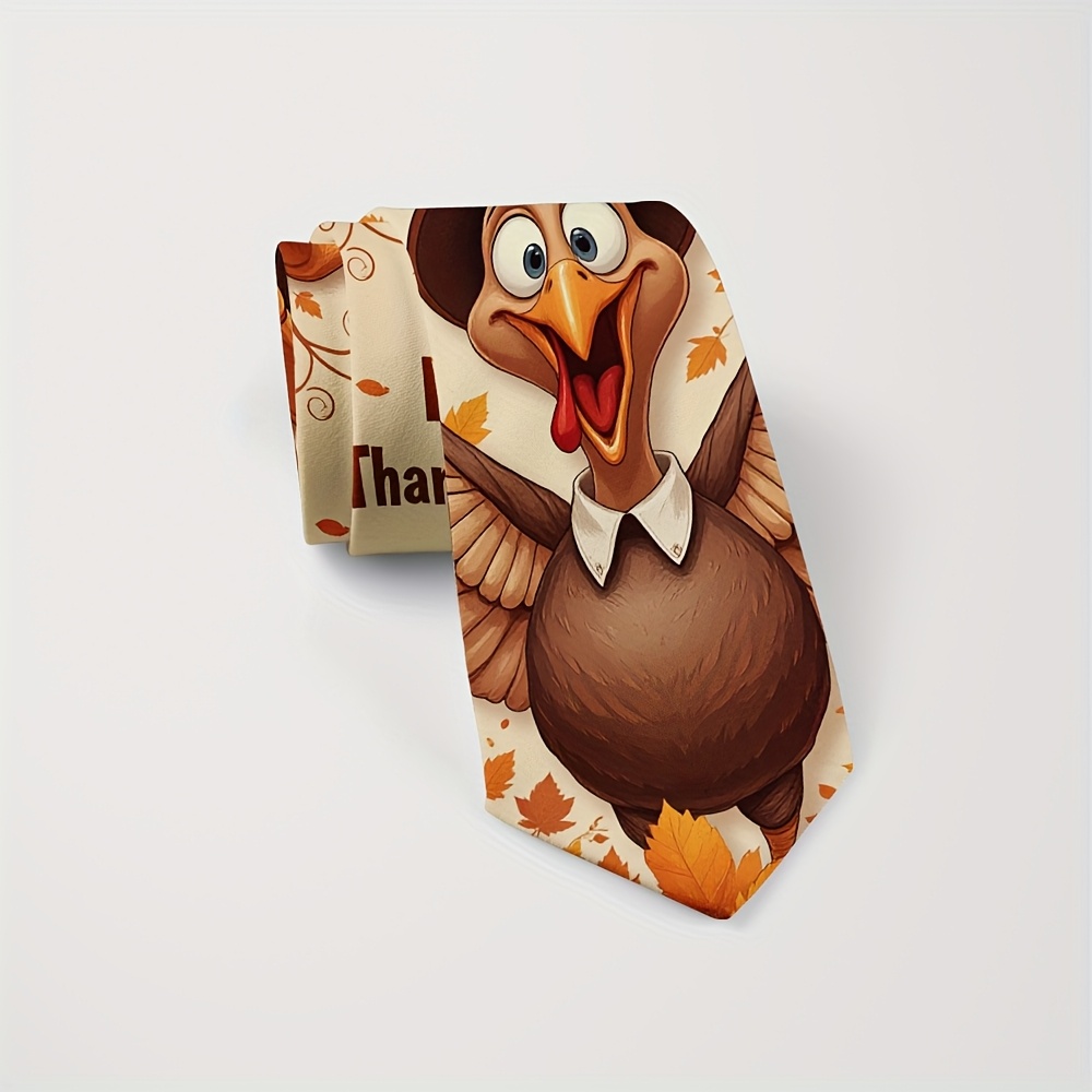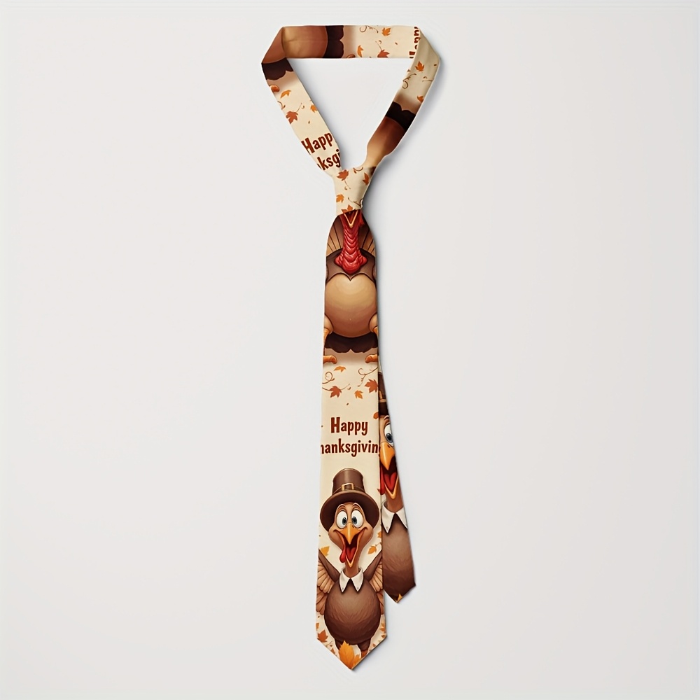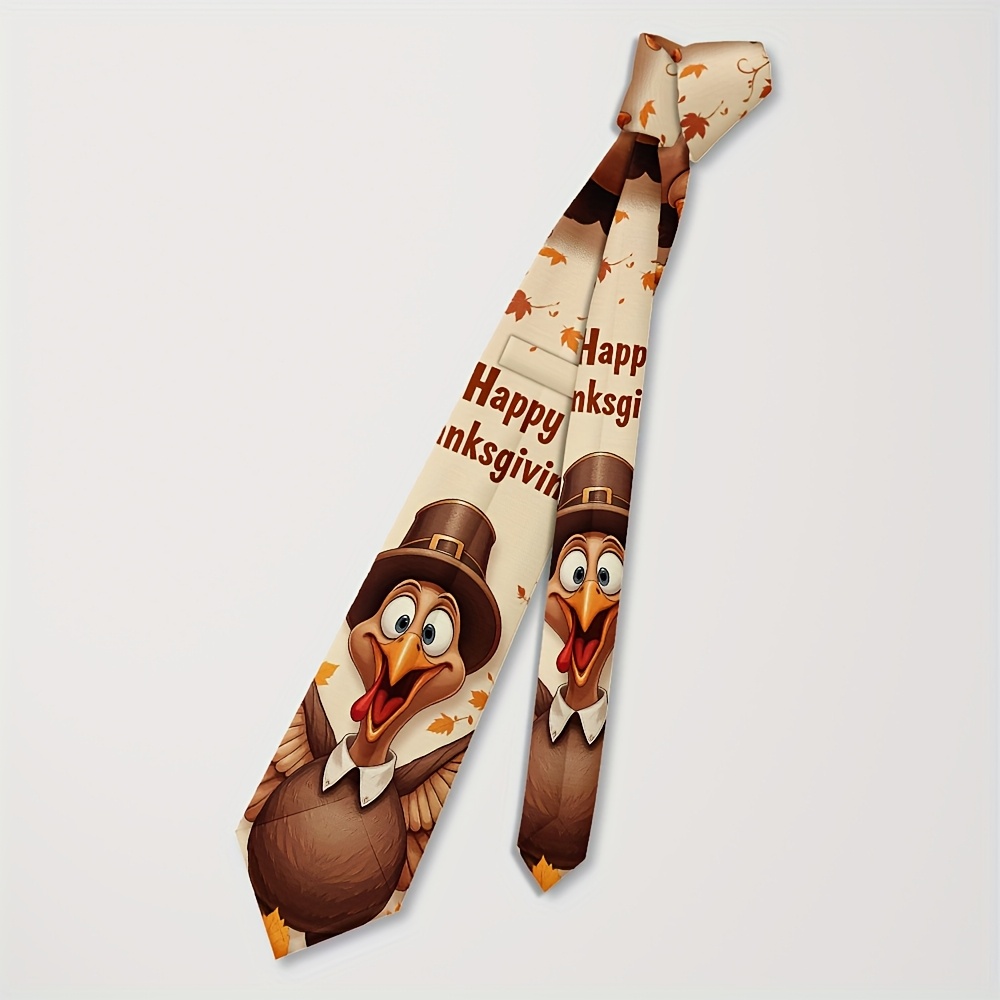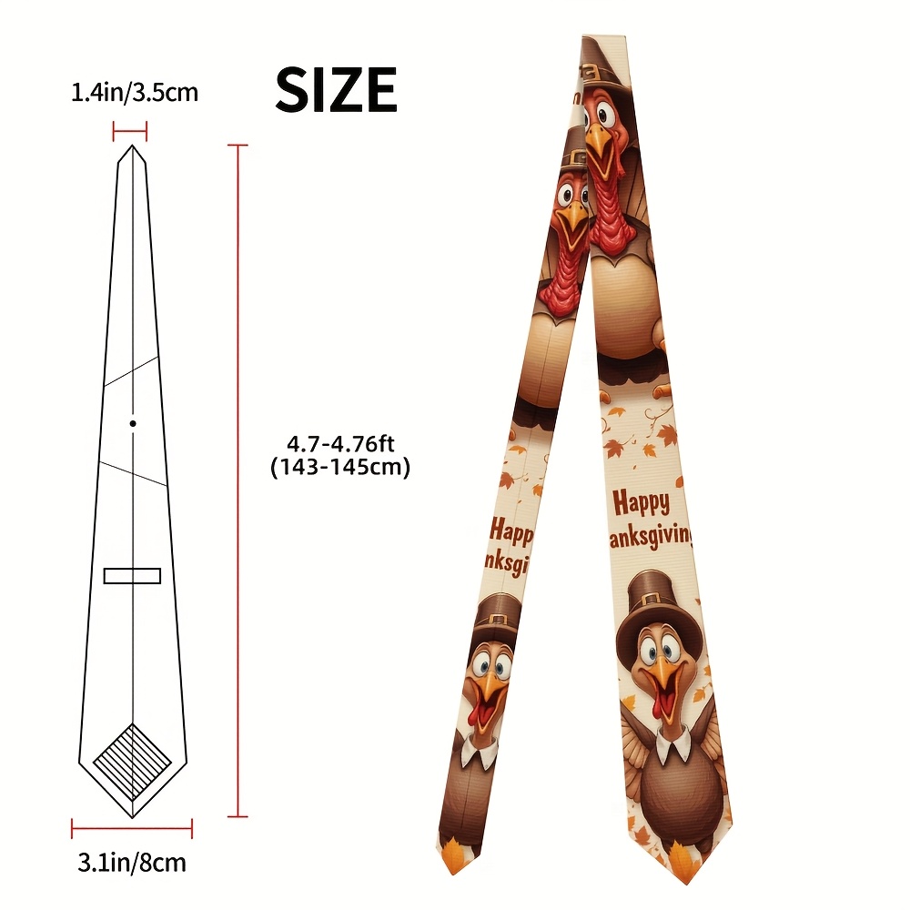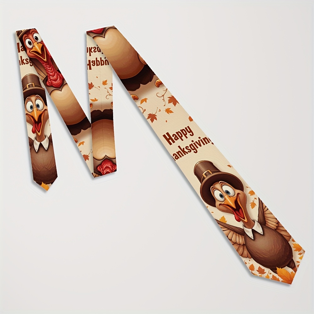 Home/Thanks Giving/[Thanksgiving Tie] 1pc Men’s Thanksgiving Tie | Cute Turkey Pilgrim & Autumn Harvest Cartoon Design, Polyester Machine-Washable Necktie for Weddings, Parties, Casual & Formal Outfits, Holiday Decoration, Festive Outfit Accessory, Durable Fabric
