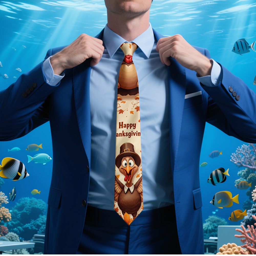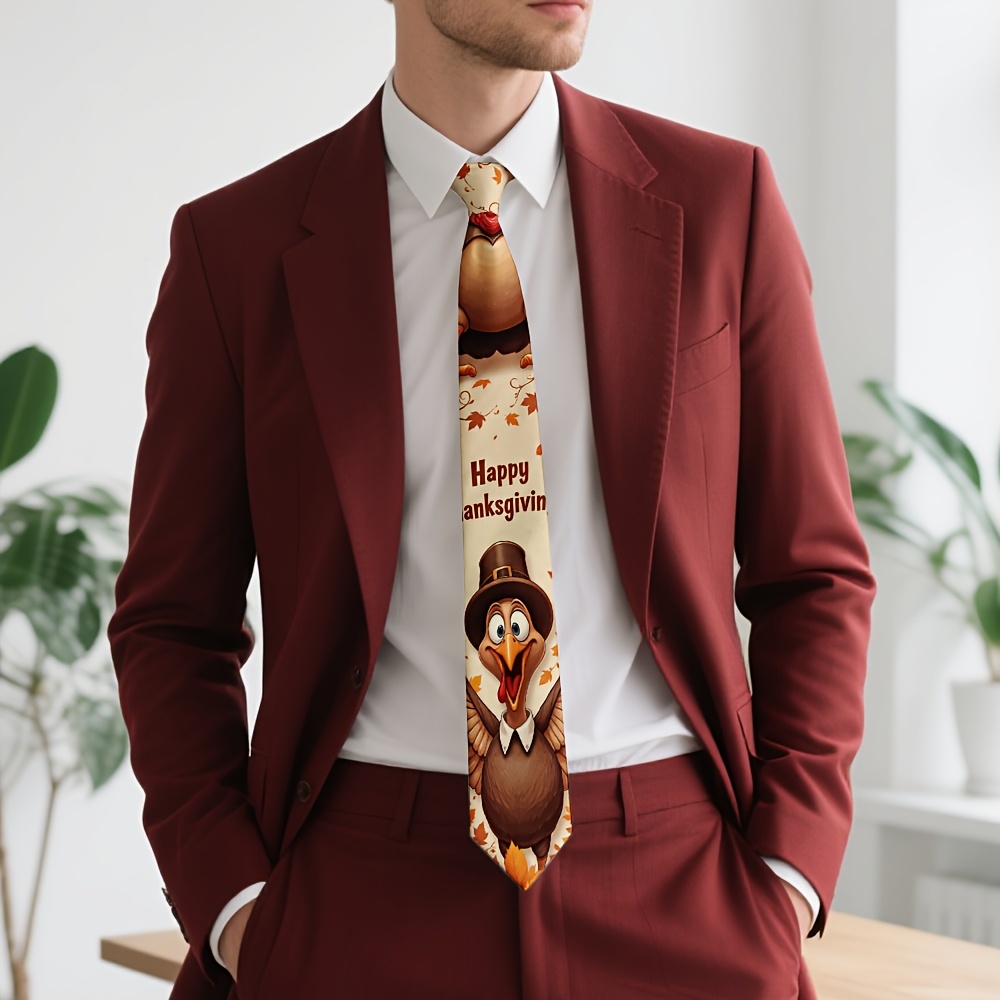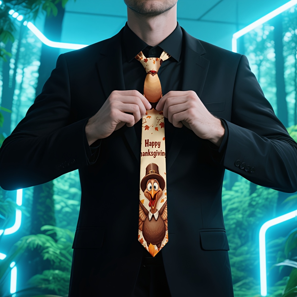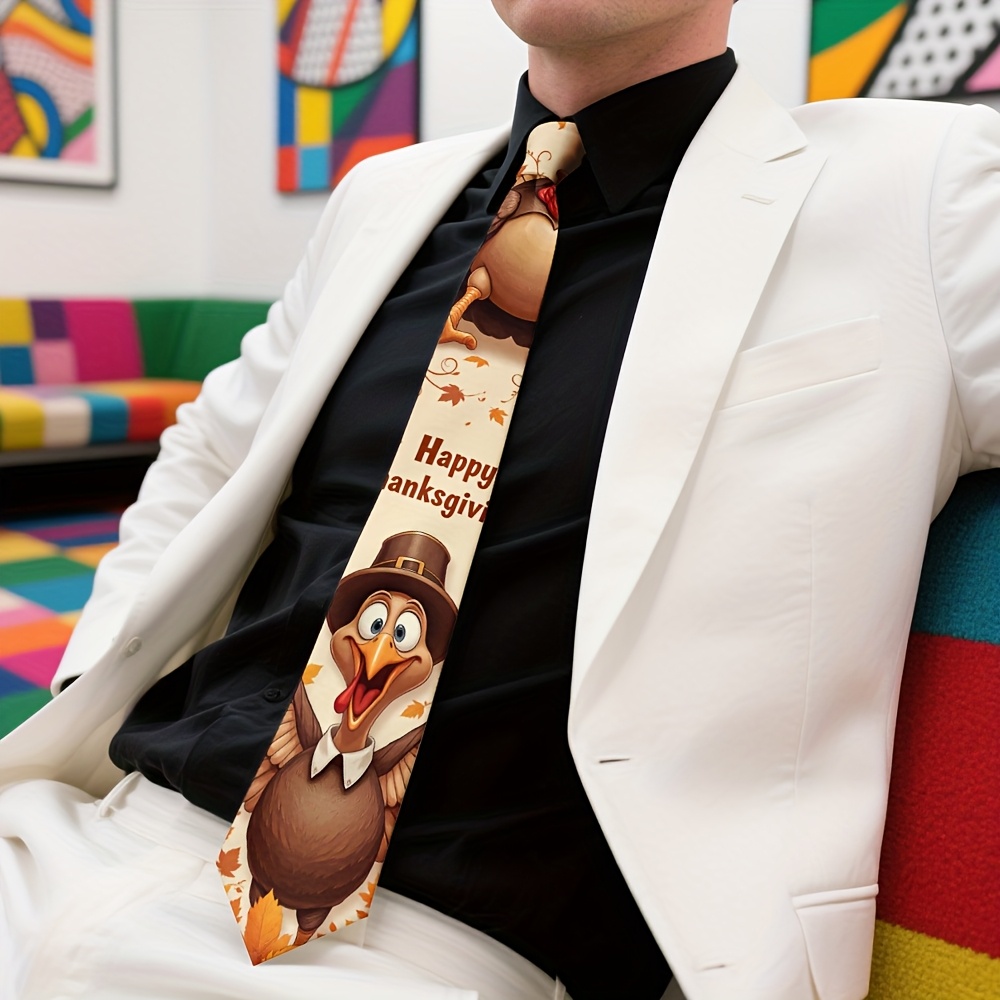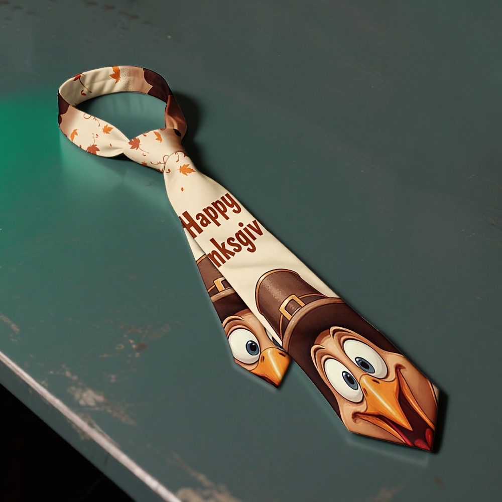 Home/Thanks Giving/[Thanksgiving Tie] 1pc Men’s Thanksgiving Tie | Cute Turkey Pilgrim & Autumn Harvest Cartoon Design, Polyester Machine-Washable Necktie for Weddings, Parties, Casual & Formal Outfits, Holiday Decoration, Festive Outfit Accessory, Durable Fabric