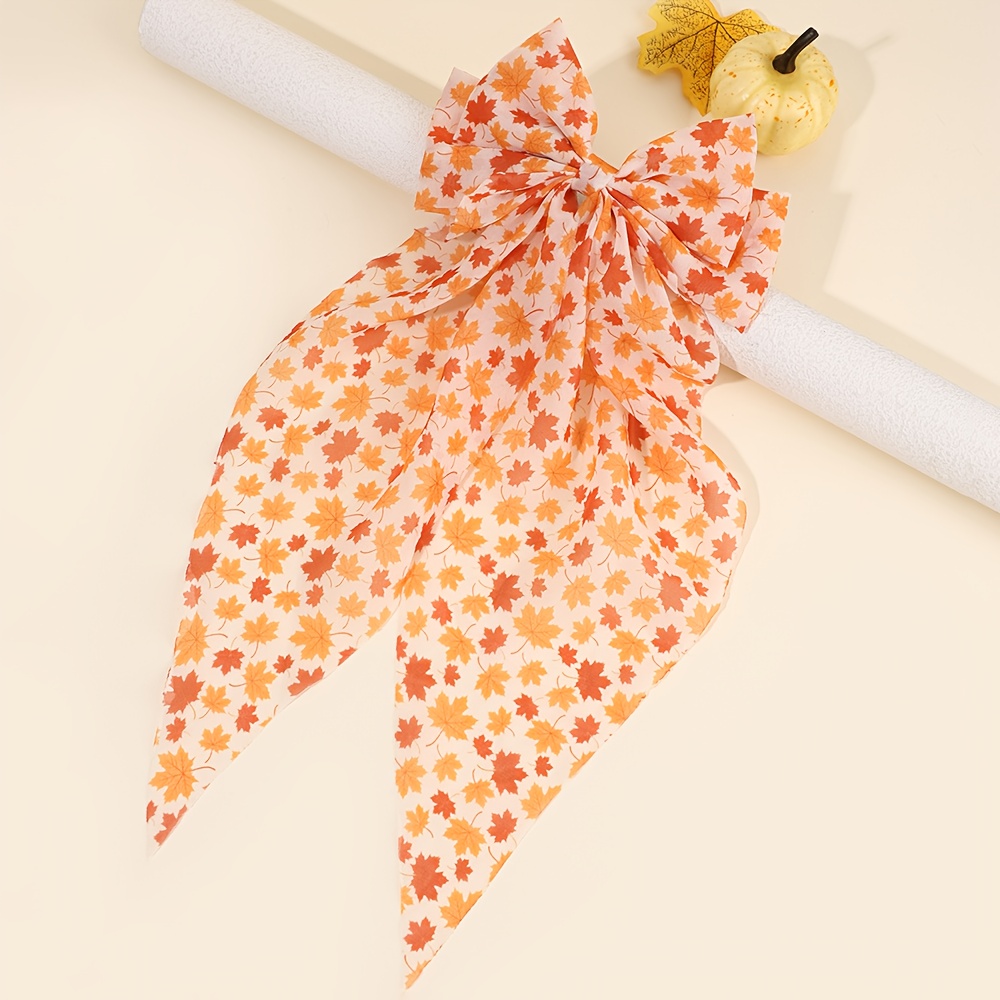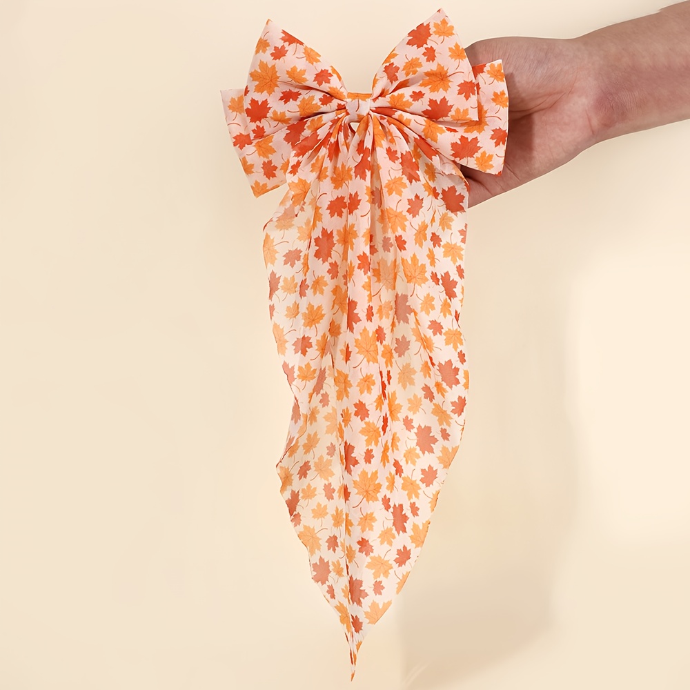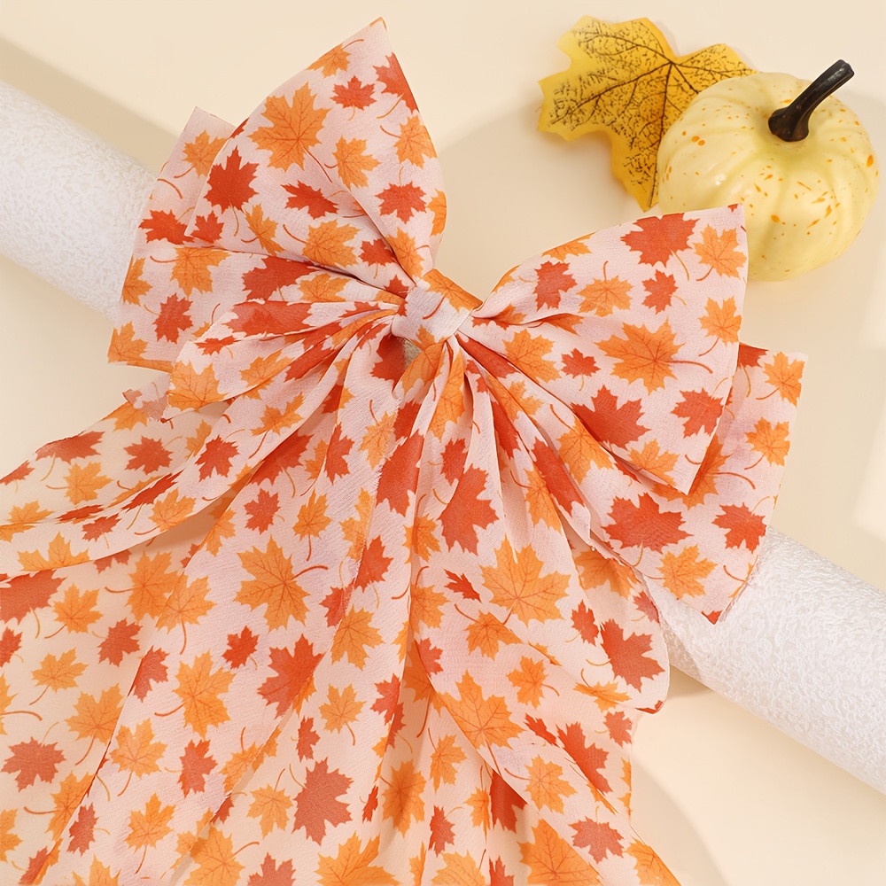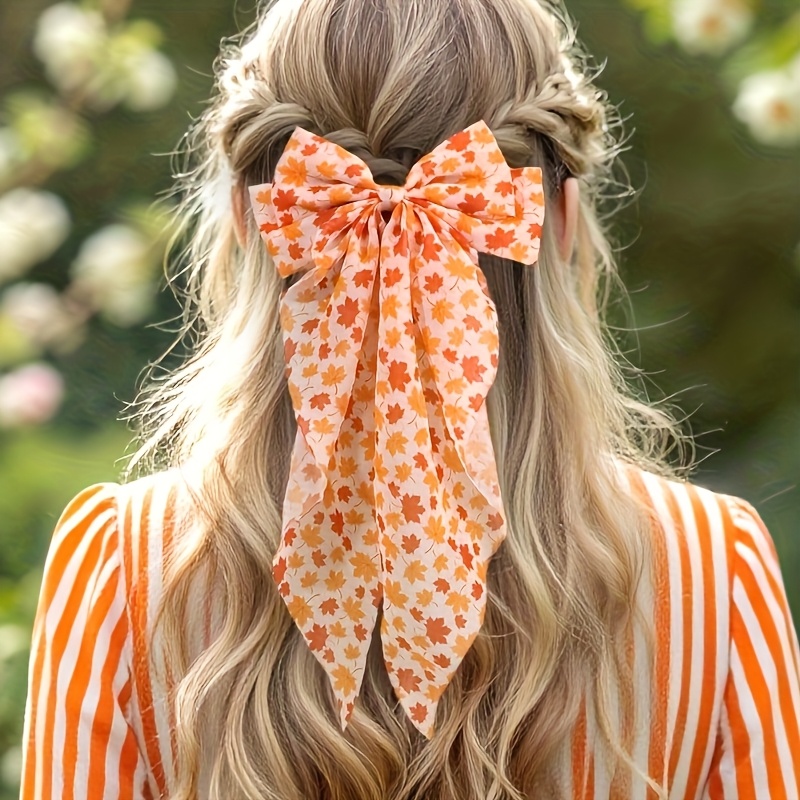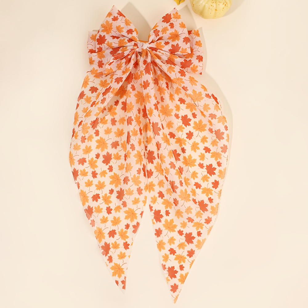 [Thanksgiving, Weddings] 1pc Elegant Maple Leaf Hair Bow Clip for Women – Large Bowknot Hairpin with Vibrant Orange & White Leaf Design, Perfect for Thanksgiving, Weddings, and Special Occasions, Hair Accessories for Women, Wedding Hair Accessory, Sophisticated Style, Durable Hairpin, Clips For, Hair Clip For Woman, Flower Hair Clip, Hair Clip, Bow Hair Clip, Hair Pin, Hair Clip For Women, Hair Ornament For Women, Hair Clip For, Hair Barrette For Women, Hair Fasteners, Hair Token For Woman, Hair Claw Clip