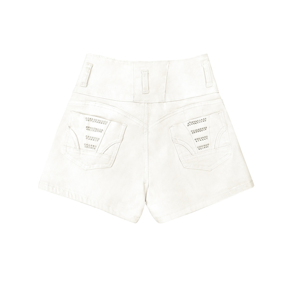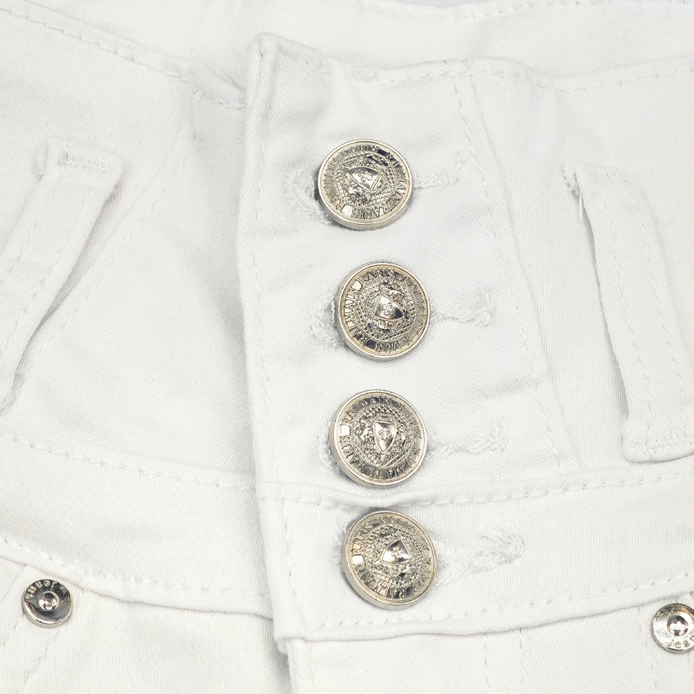 Home/Women/Jeans/White High Waist Button Shorts Slim Fit Stretch Denim
