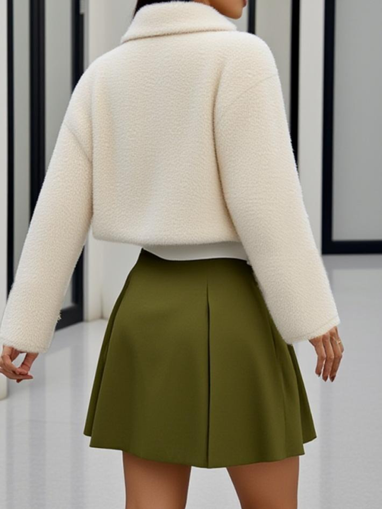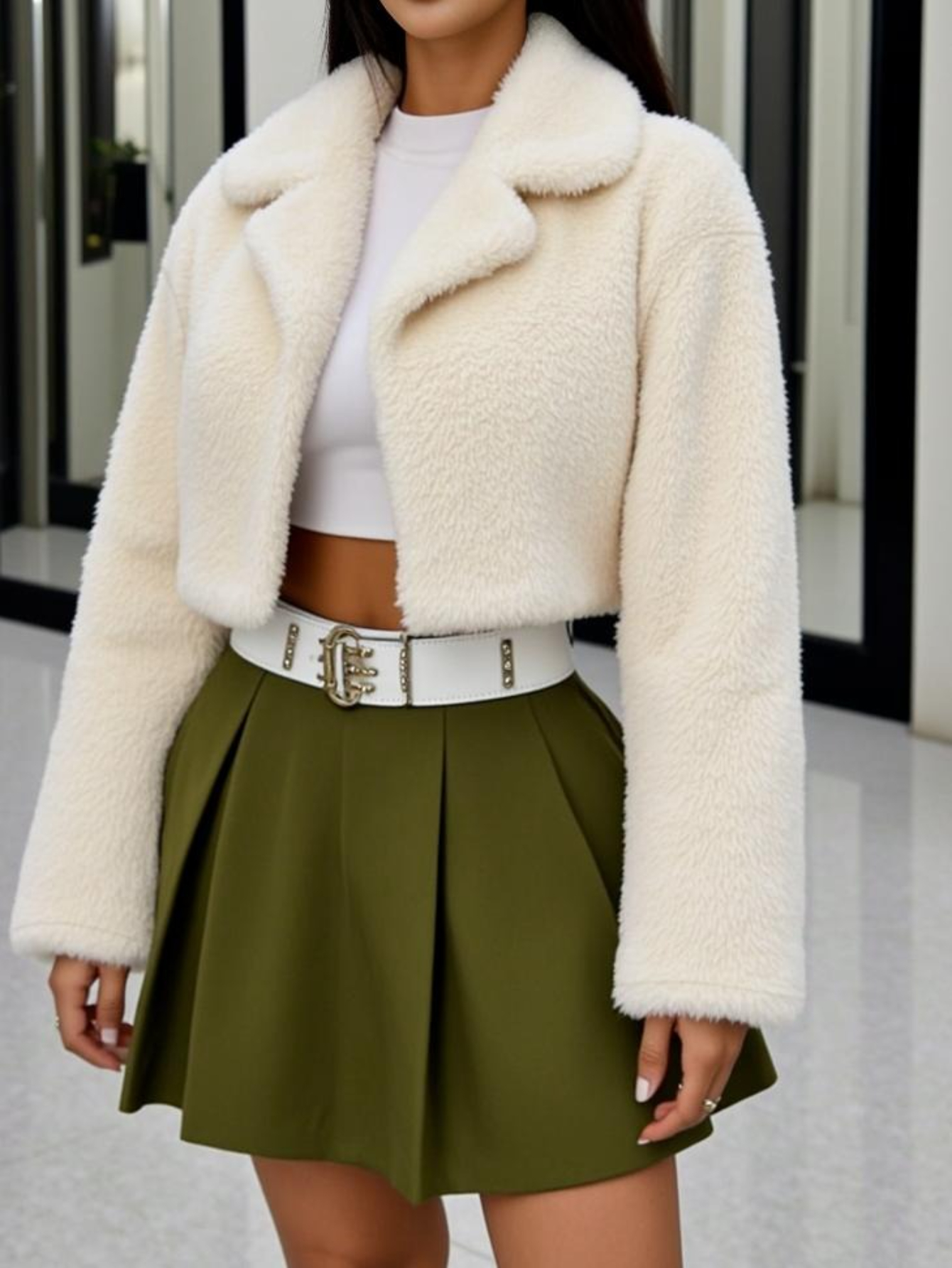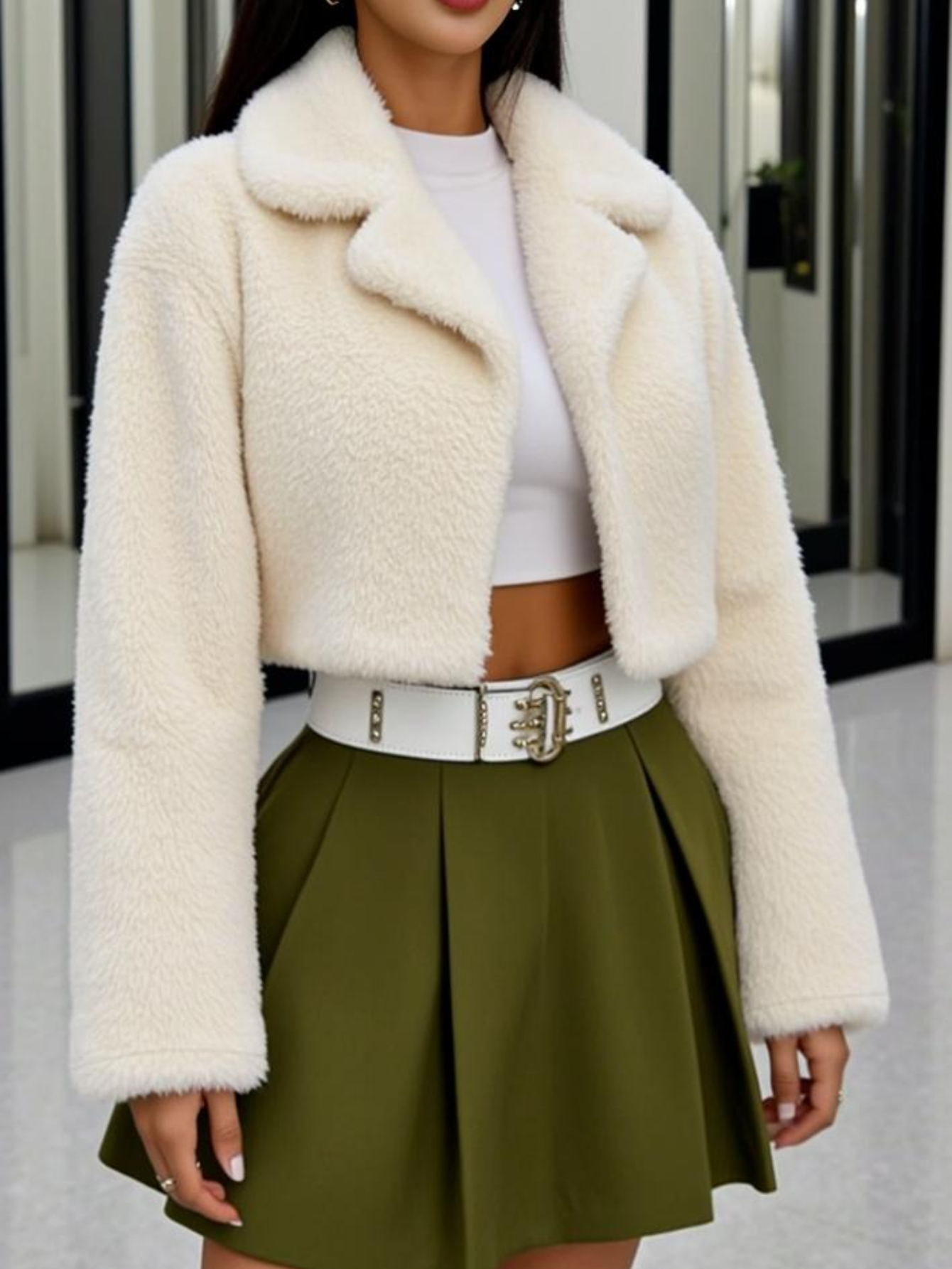Women’s Apricot-Colored -Lined Collar Short Jacket – H-Line Coat with Plush, Hand Washable Winter Outerwear for Casual & Formal Outfits (No Belt, Short Length) – Spring/Autumn Blazer