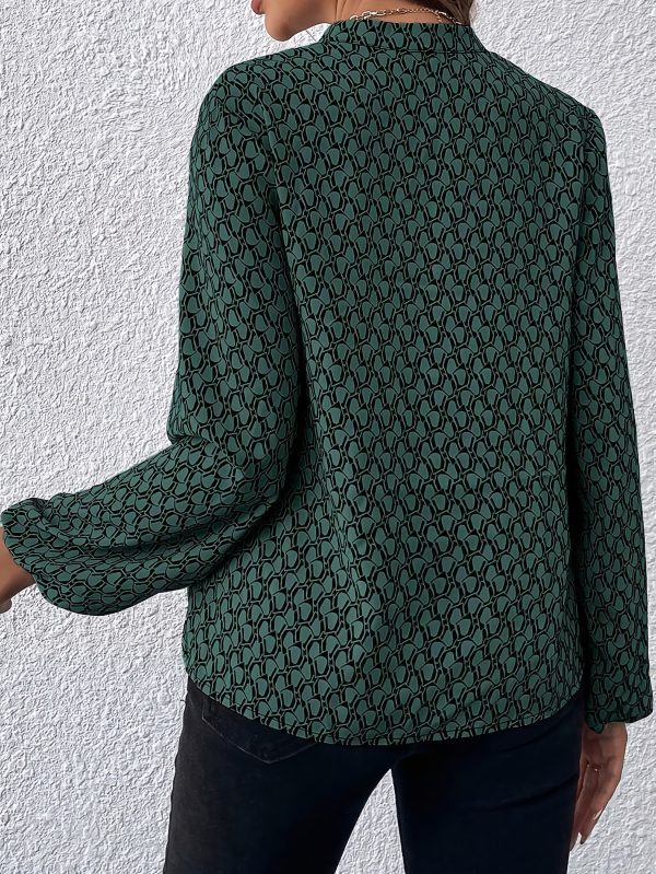 Women’s Casual Boho Floral Print V Neck Long Sleeve Drawstring Tops Loose Blouses Button Down Shirts
