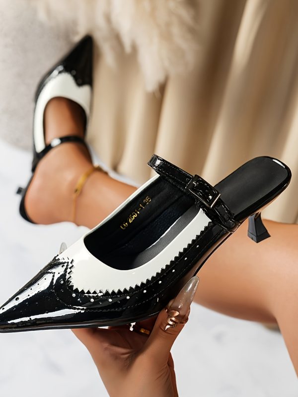 Kitten Heels, Pointed-toe Slippers, Women'S Brogue-style Fashion Slippers, Elegant And Delicate Design, Comfortable Daily Wear.