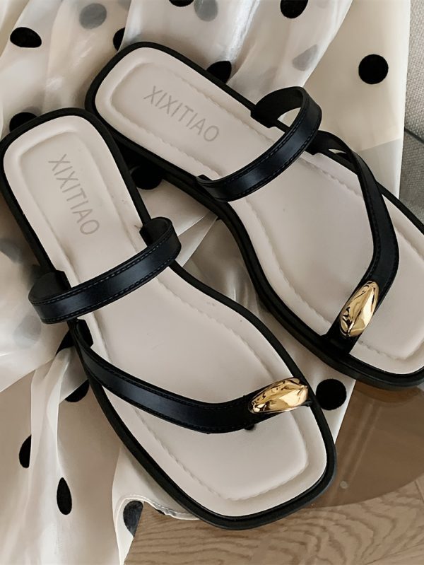 $40.51 – $44.85Price range: $40.51 through $44.85 20% OFFXIXITIAO Women'S French-Inspired Slide Sandals - Anti-slip Square-toed Slippers With Golden Accents, Black And White Casual Beach Shoes, Suitable For Both Indoor And Outdoor Summer, Simple Design, Elegant One-step Wear, Durable And Comfortable